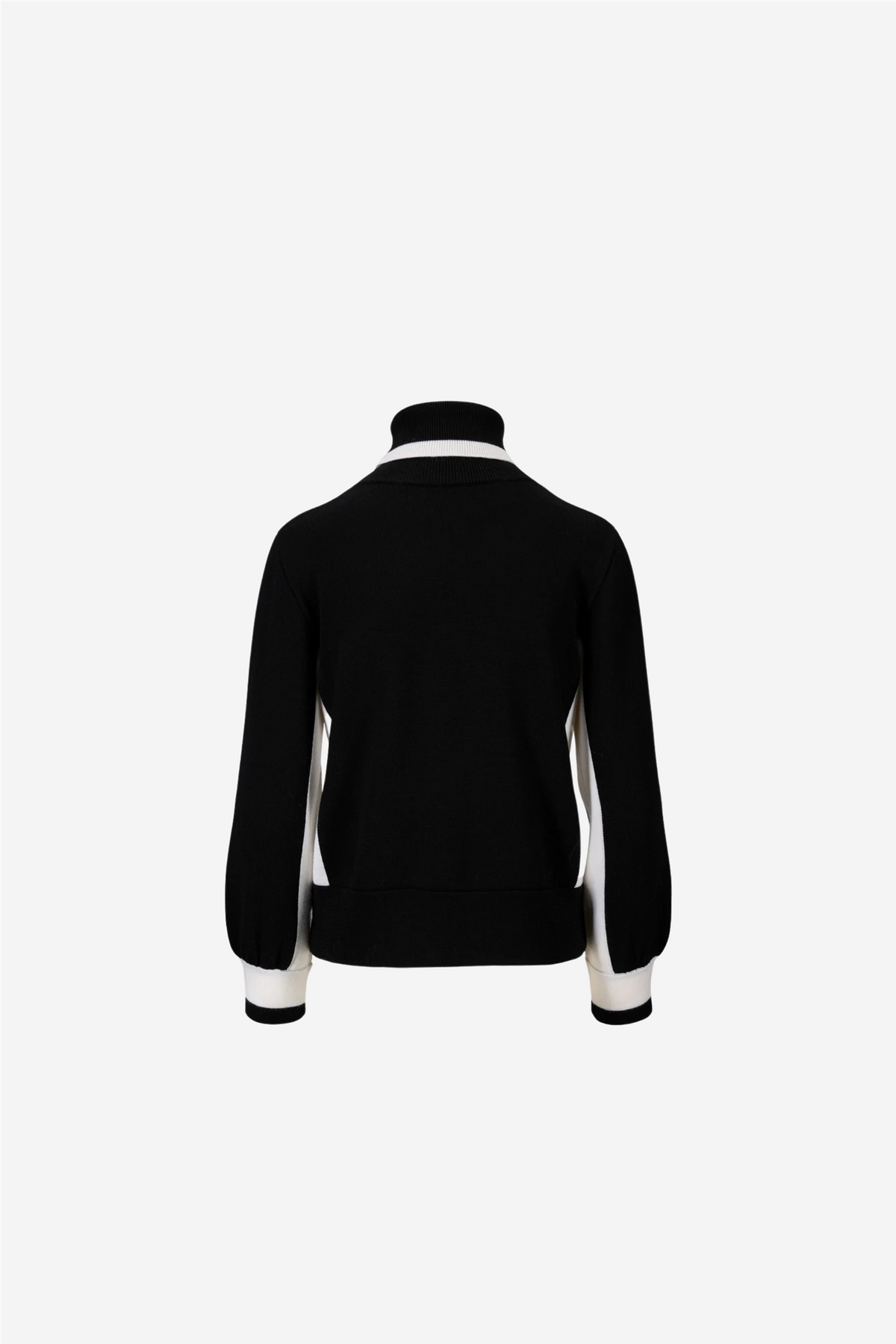 Maud merino sweater fra Ella&il. Maud Merino-genseren kombinerer komfort og stil med sin rette passform og tettsittende nederkant. Den varme turtlenecken sørger for komfort, mens kontrastpanelet foran med teksten "Les Alpes" tilfører et unikt og trendy preg. Denne merinogenseren er perfekt for avslappede anledninger eller som lag-på-lag-plagg i kaldere måneder, noe som gjør den til et allsidig tilskudd i garderoben din.