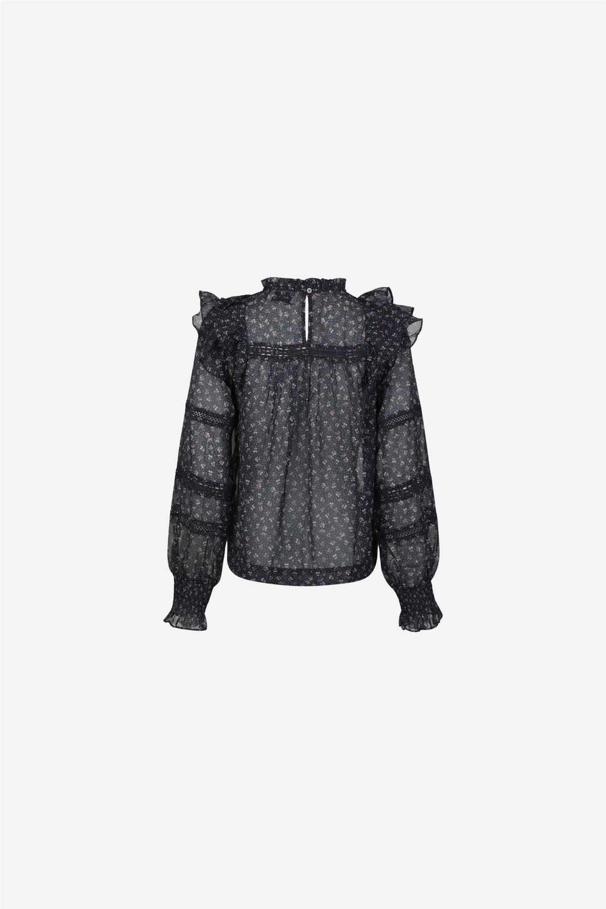 Sarna Mini Rose Blouse fra Neo Noir. Fin langermet bluse med volangdetaljer.