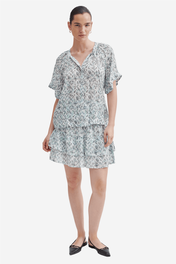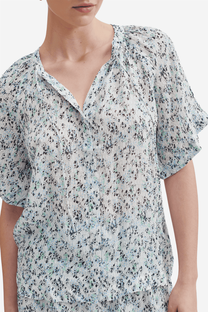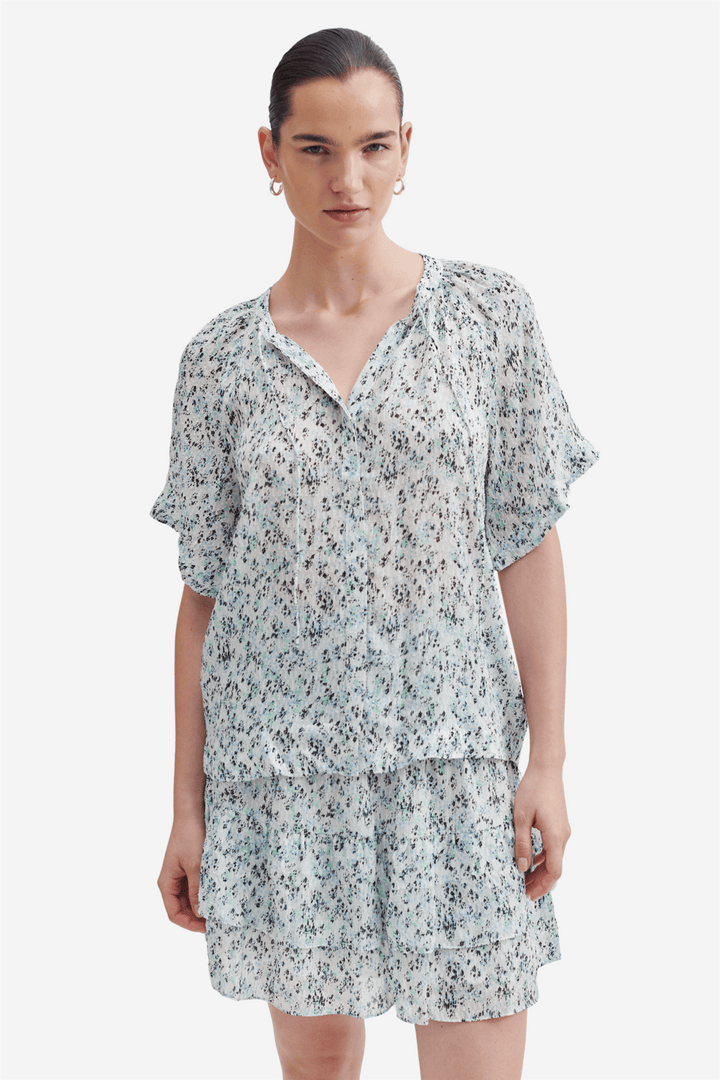 Elle Shirt fra Second Female er en bluse laget i deilig viskose. Blusen har vide, korte ermer og rund hals. Knappelukking i front og knyting i halsen.