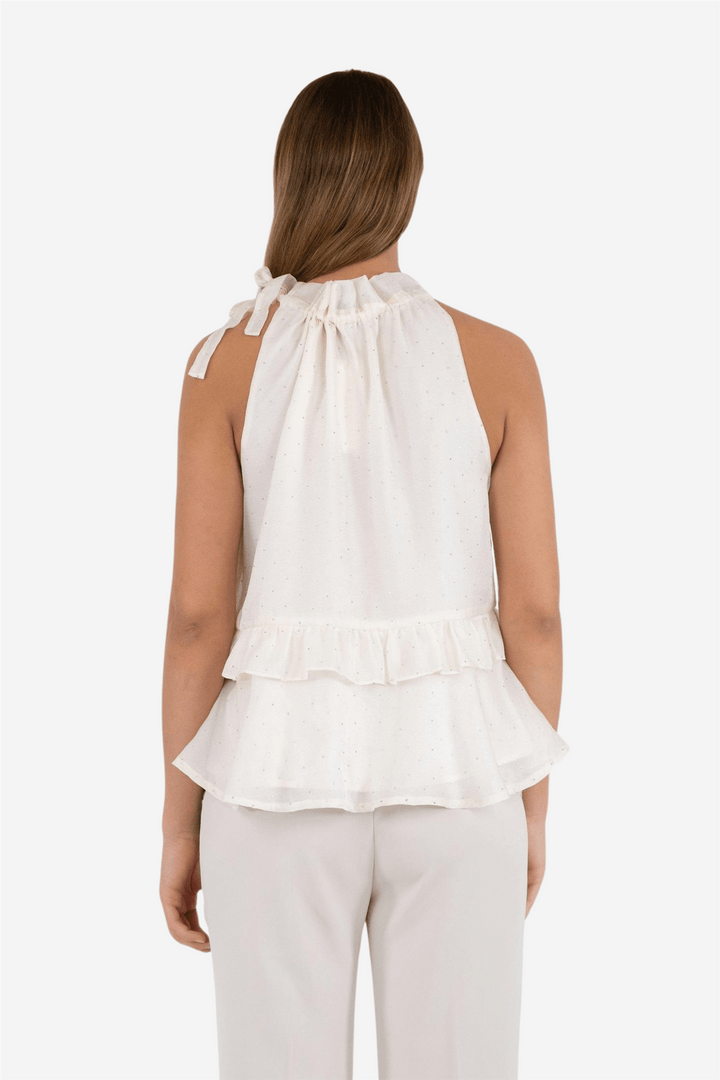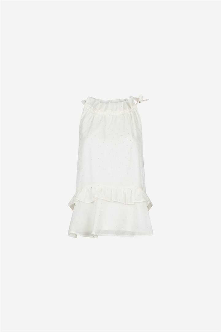 Bestselger fra Neo Noir. Margy Bedazzled Top er en søt topp i shiny materiale. Toppen er dekorert med rhinestones og volanger. Knyting rund halsen.