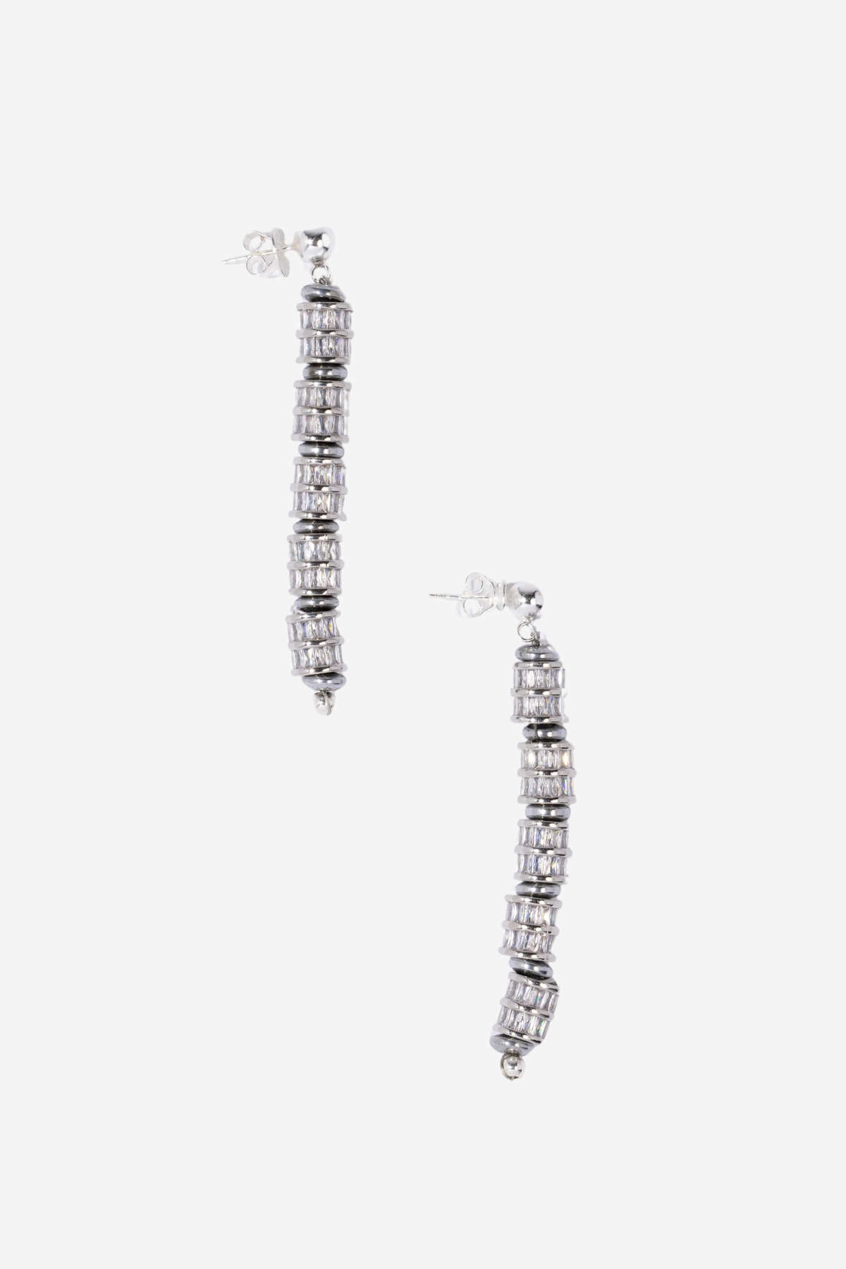 Gemini Earrings fra Pearl Octopuss.y er et slankt og moderne innslag til hverdagslooken. De høyglansede gunmetal-perlene kombinert med glitrende glasskrystaller gir øredobbene et stilrent, men markant uttrykk.