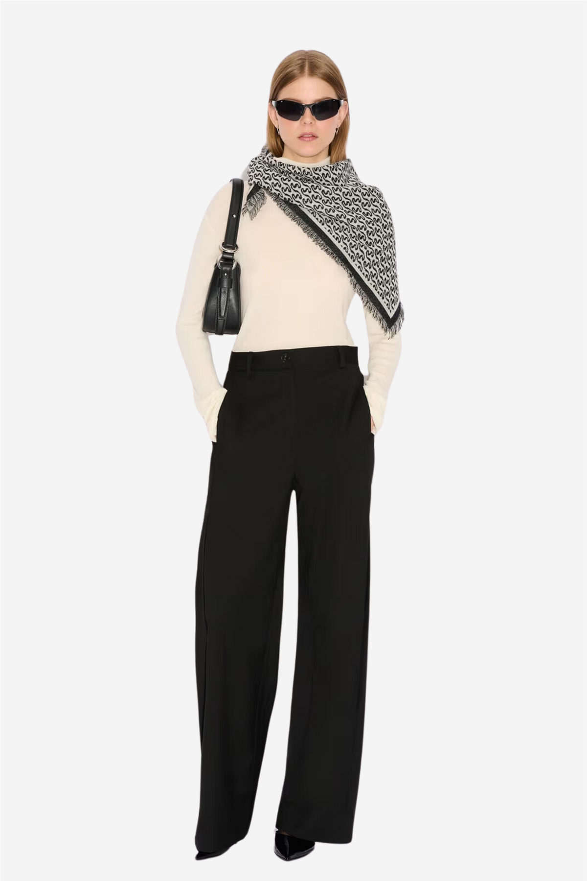 Holzweiler Tilbehør Fine Wool Scarf Monogram Ecru Mix