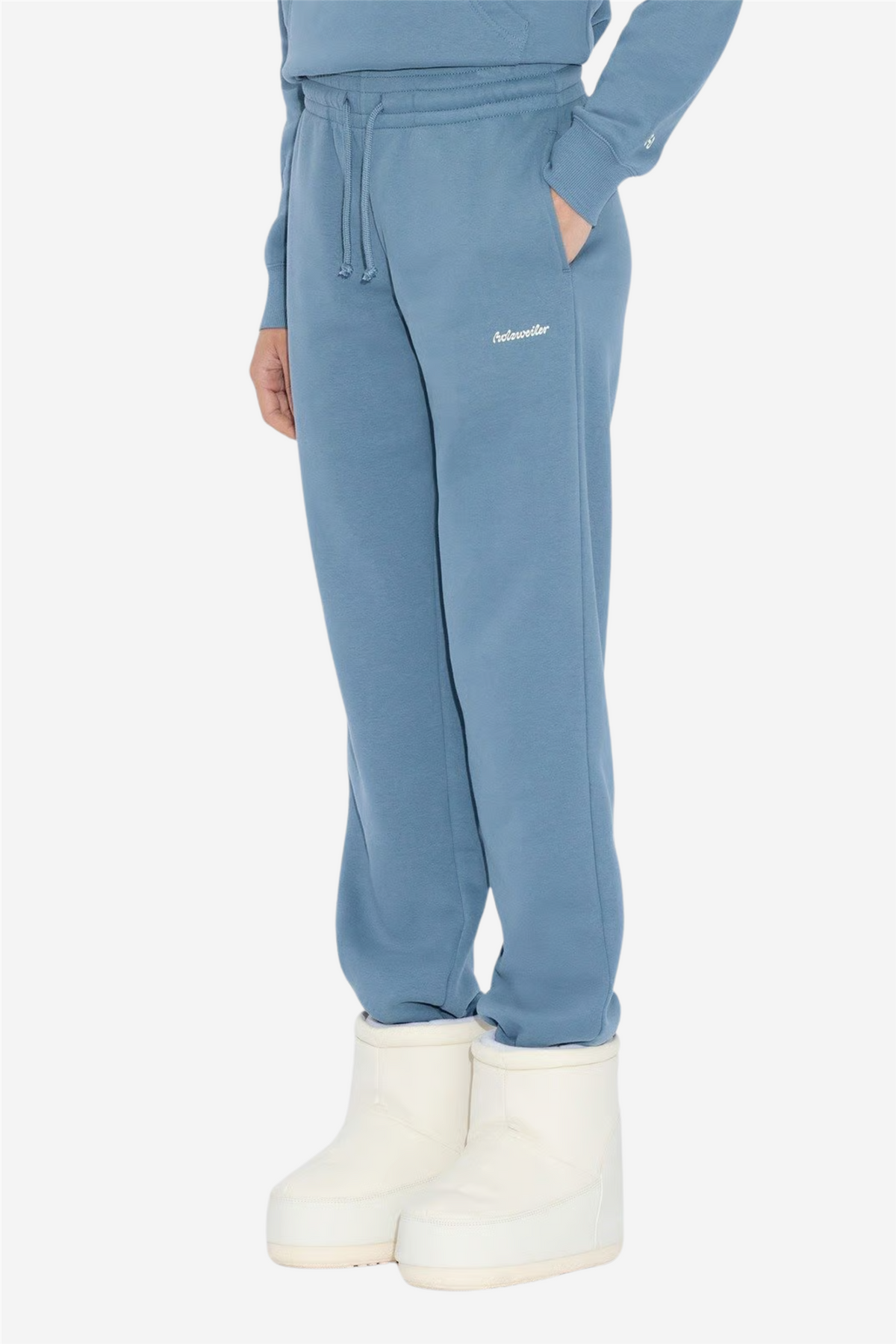 W Regular Trouser fra Holzweiler. Regular-buksene er laget i en myk bomullsblanding og har ribbet midje med elastikk, ribbede ankelmansjetter og logo under venstre lomme. Perfekte å style med matchende Regular Zip Hoodie.