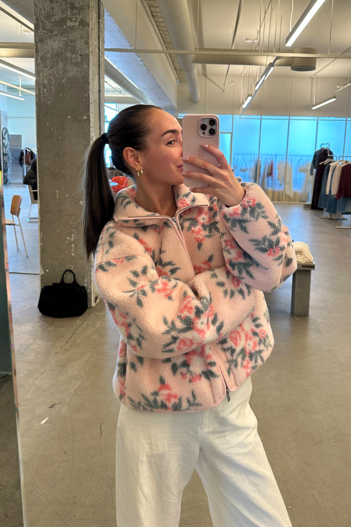 Rype Fleece Jacket fra Holzweiler kombinerer komfort og stil i denne populære fleecejakken. Den kommer i en lys rosanyanse med et subtilt blomstermønster som gir et mykt og feminint preg. Jakken har høy hals, lange ermer og romslige lommer, og lukkes med glidelås i front for et rent og funksjonelt uttrykk. Den myke, resirkulerte fleecen føles behagelig mot huden og holder deg varm på kjølige dager, enten du er ute på tur eller bare vil ha et varmt og stilrent lag i hverdagen.