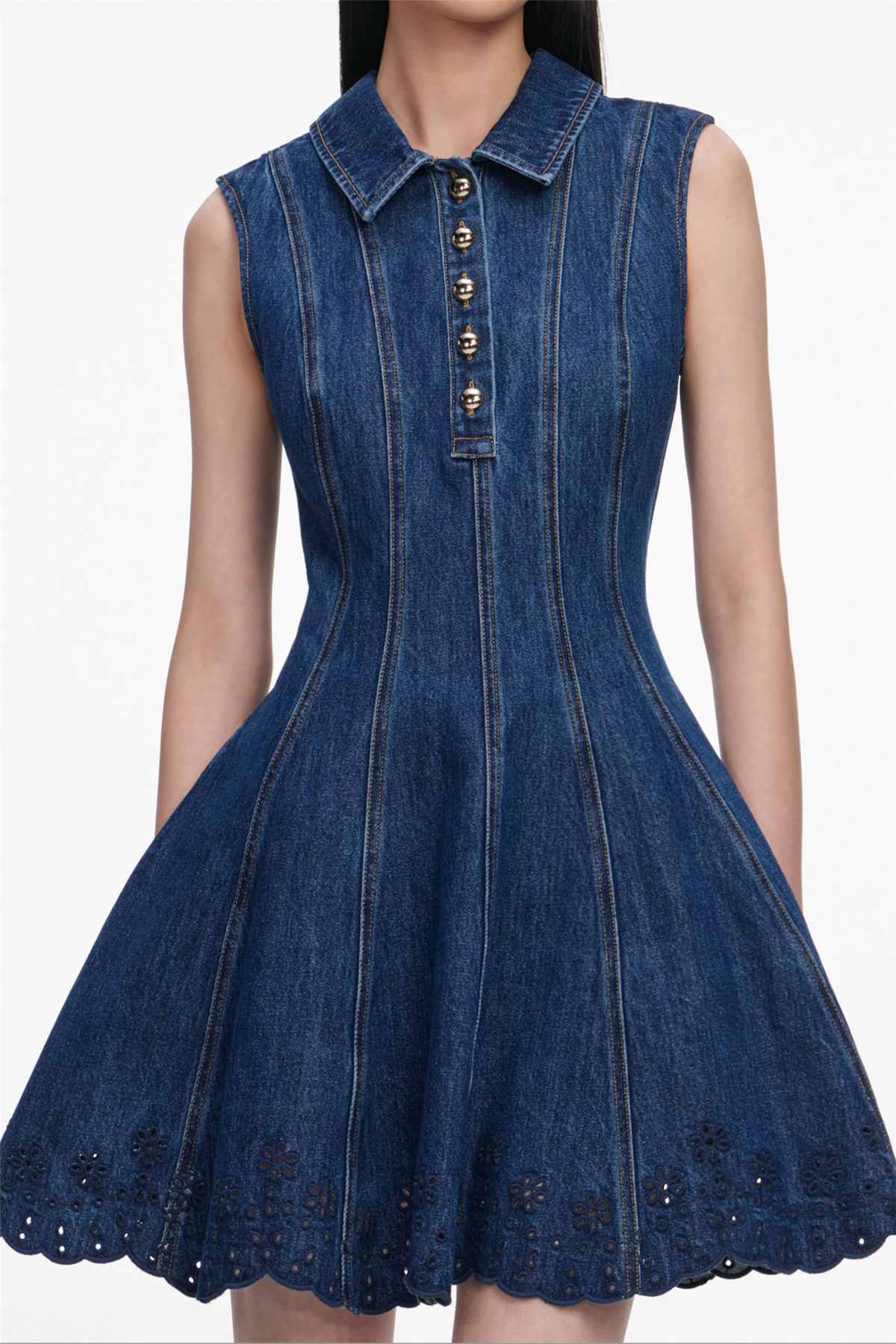 Denim Broderie Mini Dress Blue