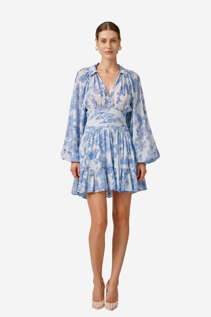 Chiffon Mini Dress from By Timo is a light and airy dress in FSC-certified viscose, designed to combine comfort with timeless elegance. The dress has a feminine mini length and a flowing skirt that gives a beautiful movement. The top is loose with decorative buttons, a v-neck and a narrow collar, while the waist is emphasized with an elastisSmocking at the back and delicate ruching details at the front. The sleeves are long and voluminous with tight-fitting cuffs that add a sophisticated touch.