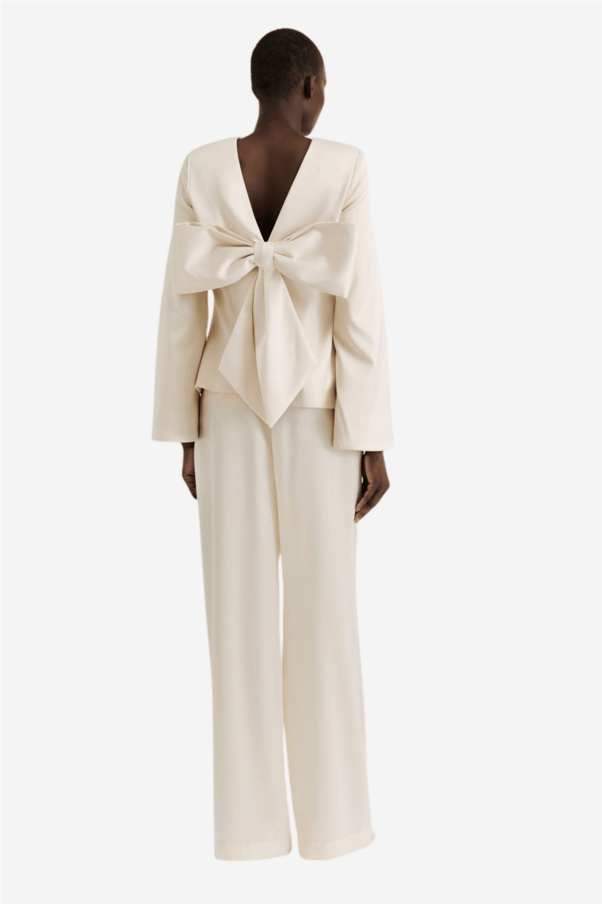 Elna Bow Detailed Top fra Malina er en elegant og feminin topp med åpen rygg og en vakker sløyfedetalj som gir et sofistikert preg. Den tettsittende passformen fremhever silhuetten, mens den åpne ryggen tilfører et moderne og delikat uttrykk – perfekt både til penbukser og skjørt.