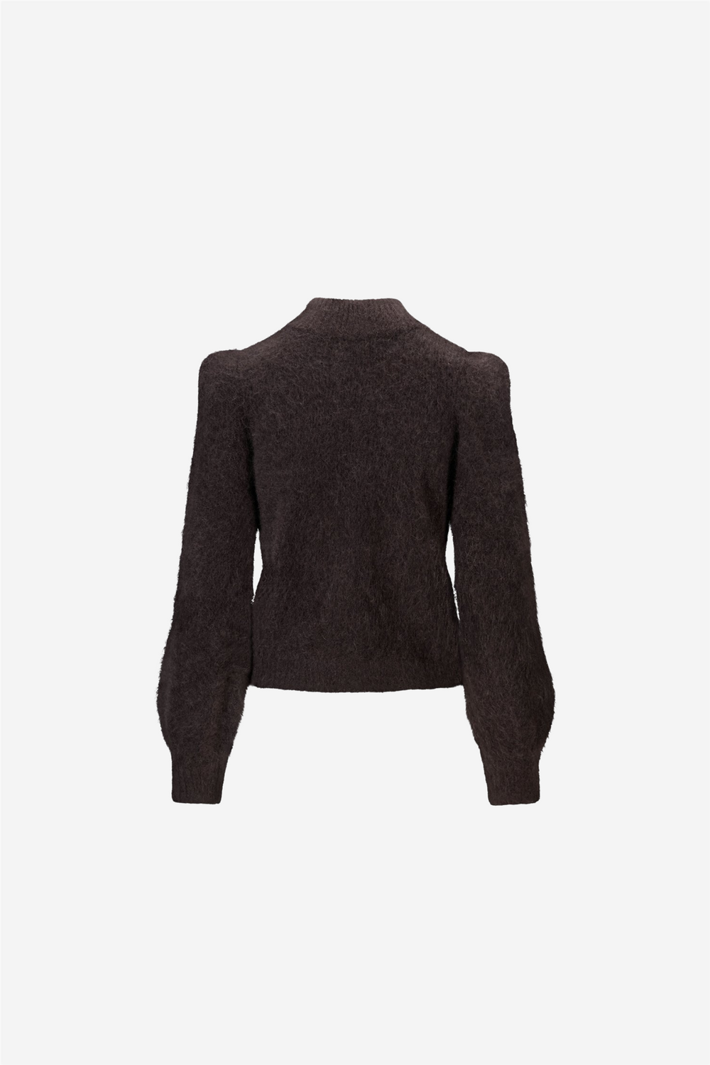 Venja Chunky Sweater fra Ella & il er en kort og moderne strikkegenser laget i en luksuriøs mohairblanding. Genseren har en rund hals, voluminøse ermer med plissert overdel og ribbestrikket midje som gir en feminin og flatterende silhuett. En diskret glidelås i front gir mulighet for fleksibel styling – enten åpen for et mer avslappet uttrykk eller lukket for et klassisk look. Perfekt både til hverdags og når du vil pynte opp antrekket med en elegant statement-genser.