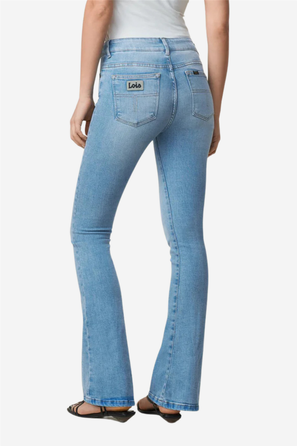 Raval 16 Angel Cloudy from Lois is a pair of jeans made from super soft denim with a slight fading. It is fitted from the top followed by Lois' signature flare from the knee down. A classic five-pocket model with a normal to high waist. One of Lois' most iconic and best-selling models.