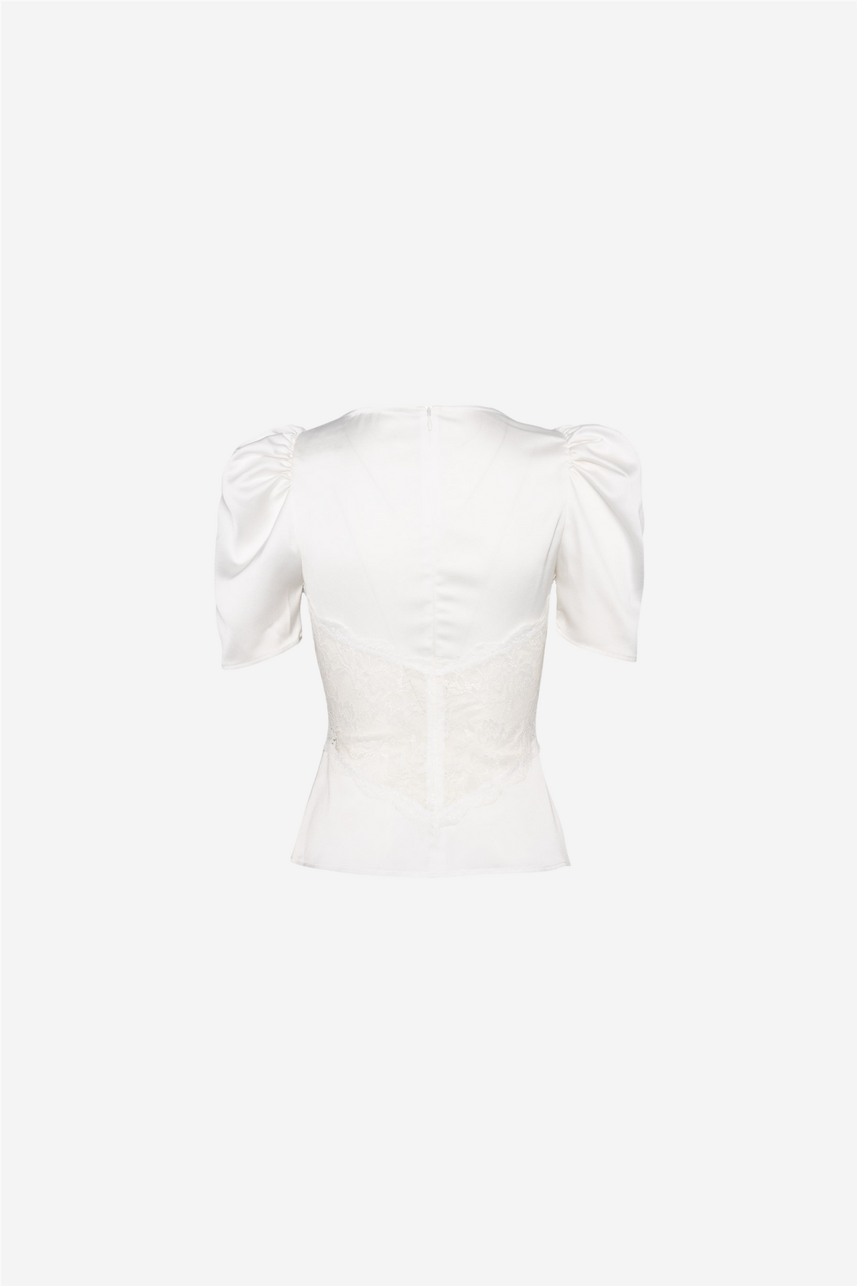 Francis Top from Love Lolita is an elegant top with a tailored waist. Together with the puffed sleeves and deep v-neck, the top gives a hint of glamour while being sophisticated. Zipper in the back and shoulder pads. The top is versatile and is just as suitable for a party as for everyday wear with your favorite jeans!