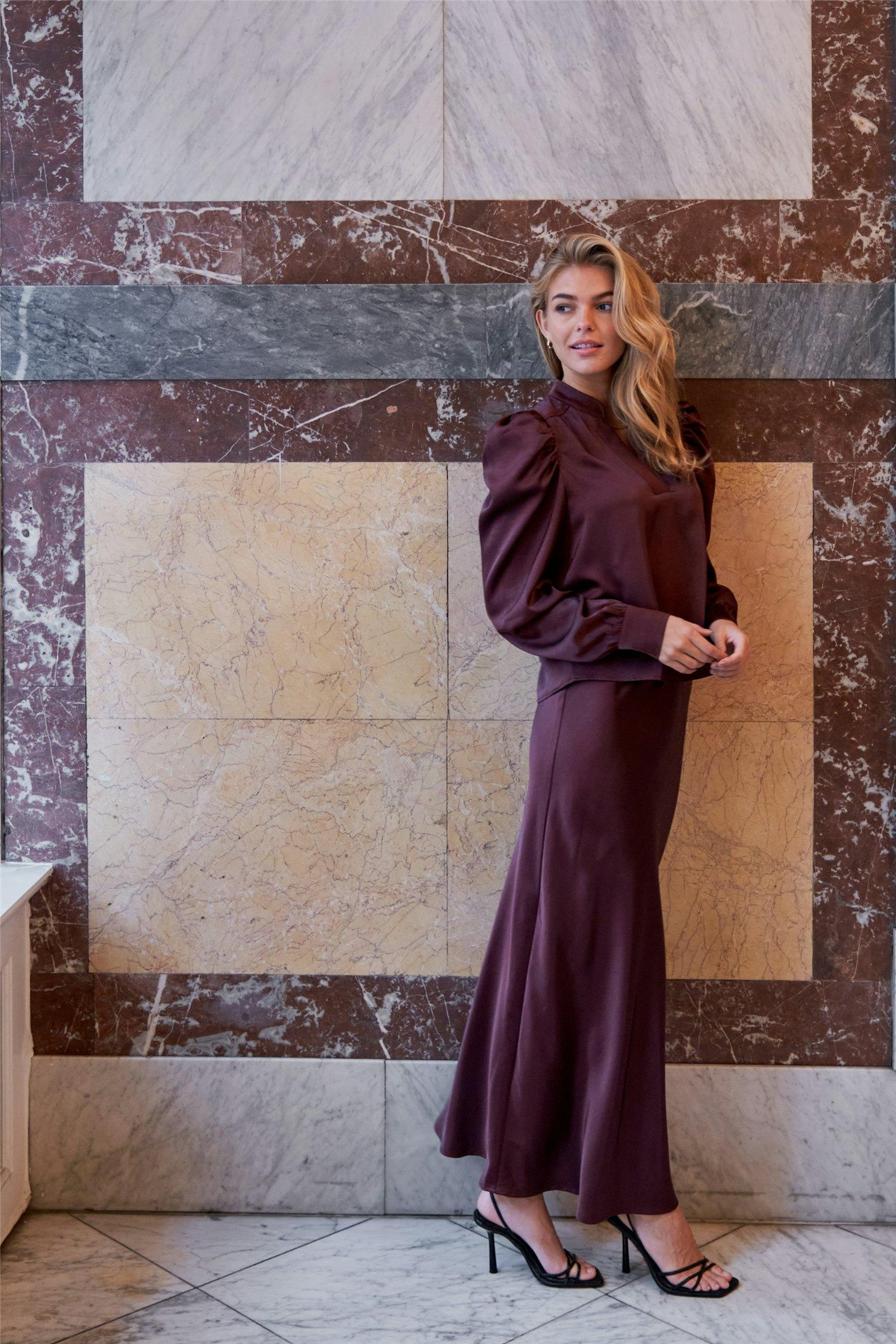 Vicky Heavy Sateen Skirt Burgundy