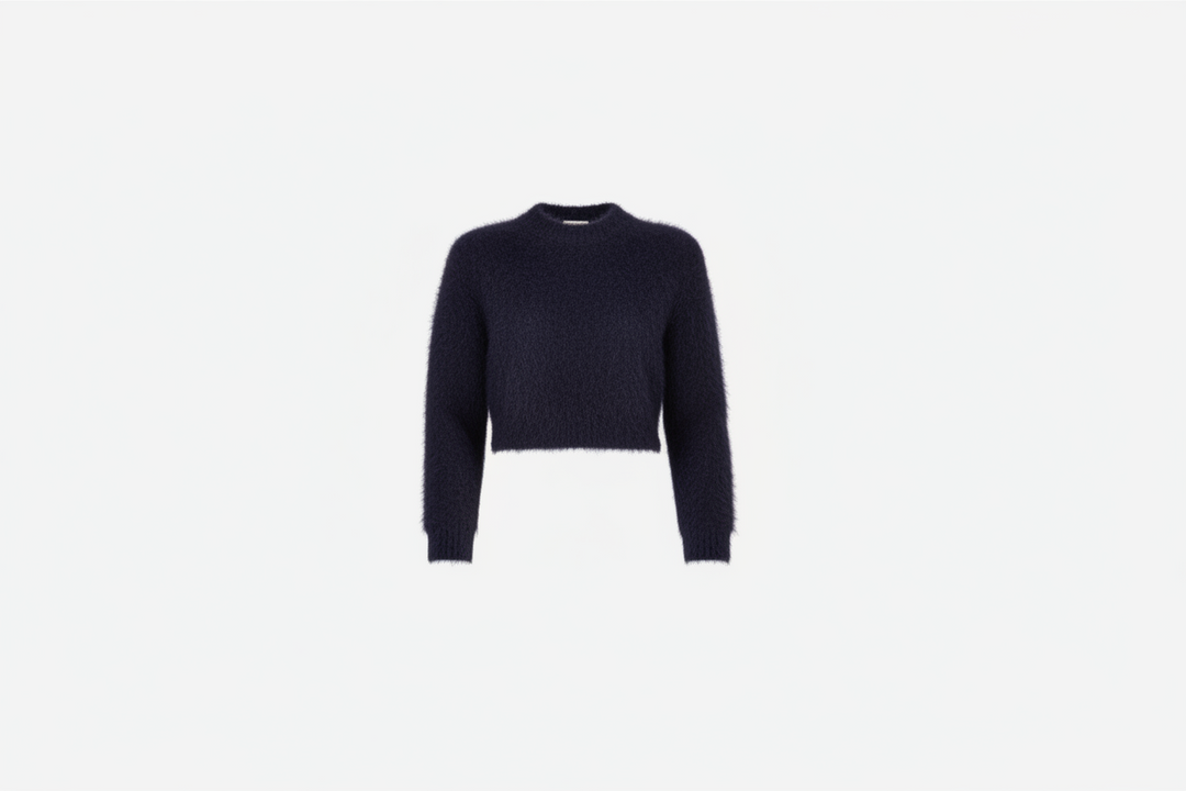 Hairy Knit Fitted Sweater Navy