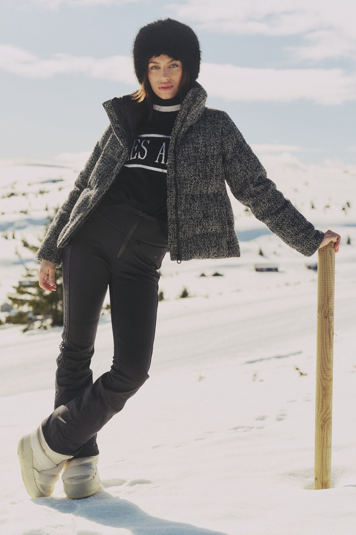 Indie Tweed Jacket fra Ella&il. En stilig og varm jakke med en lett A-formet silhuett. Jakken har glidelås foran, en koselig hette og sidelommer med glidelås. Midjen kan justeres med innvendig snøring for en personlig passform, mens de rette ermene gir et strømlinjeformet uttrykk.
