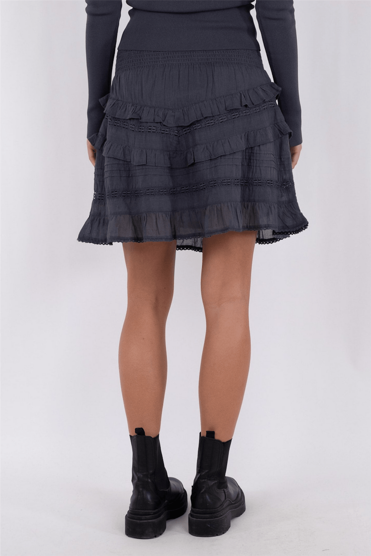 Neo Noir Donna S Voile Skirt is a short skirt with nice frill details and smocked elastic at the waist for a comfortable fit. The quality is a soft cotton voile that drapes beautifully.