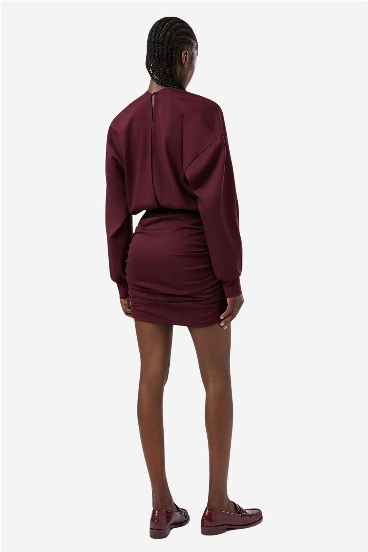 Sylvia Puffsleeves High Waist Mini Dress Compact Jersey from The Andamane is a mini dress that blends classic tailoring with a modern sensibility. The dress features a slightly open back, exaggerated puff sleeves and a fitted skirt. The mini skirt complements the voluminous top of the dress with its clean lines. It closes with a zipper and button.