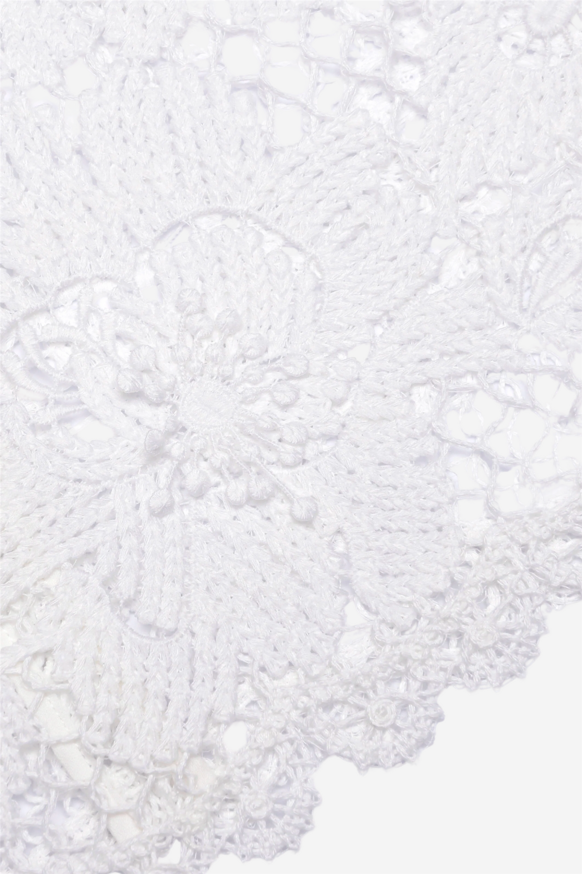 Crochet Lace Top fra Self-Portrait. Kunstferdig heklearbeid og utsvingte ermer gir denne hvite blondetoppen et elegant, bohemsk uttrykk. En moderne garderobefavoritt som balanserer letthet og struktur, like naturlig stylet med denim til helgebrunsj som kombinert med et blondeskjørt til sesongens soirées. En gjennomført signaturpiece som løfter enhver styling.