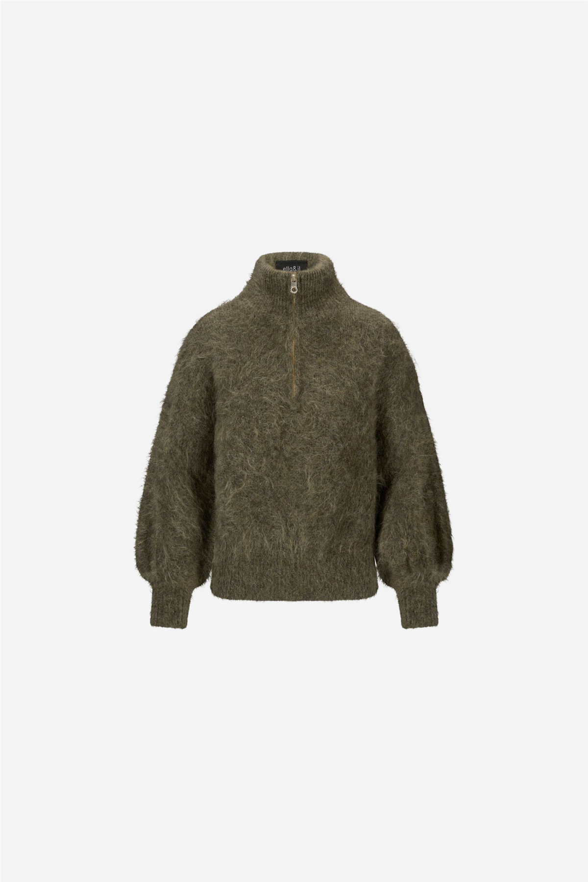 Li Chunky Sweater fra Ella&il. Li mohair-genseren er en myk, oversized genser med halv glidelås. Glidelåsen gjør det enkelt å style genseren på forskjellige måter og skape ulike uttrykk, noe som gjør Li mohair-genseren svært allsidig.
