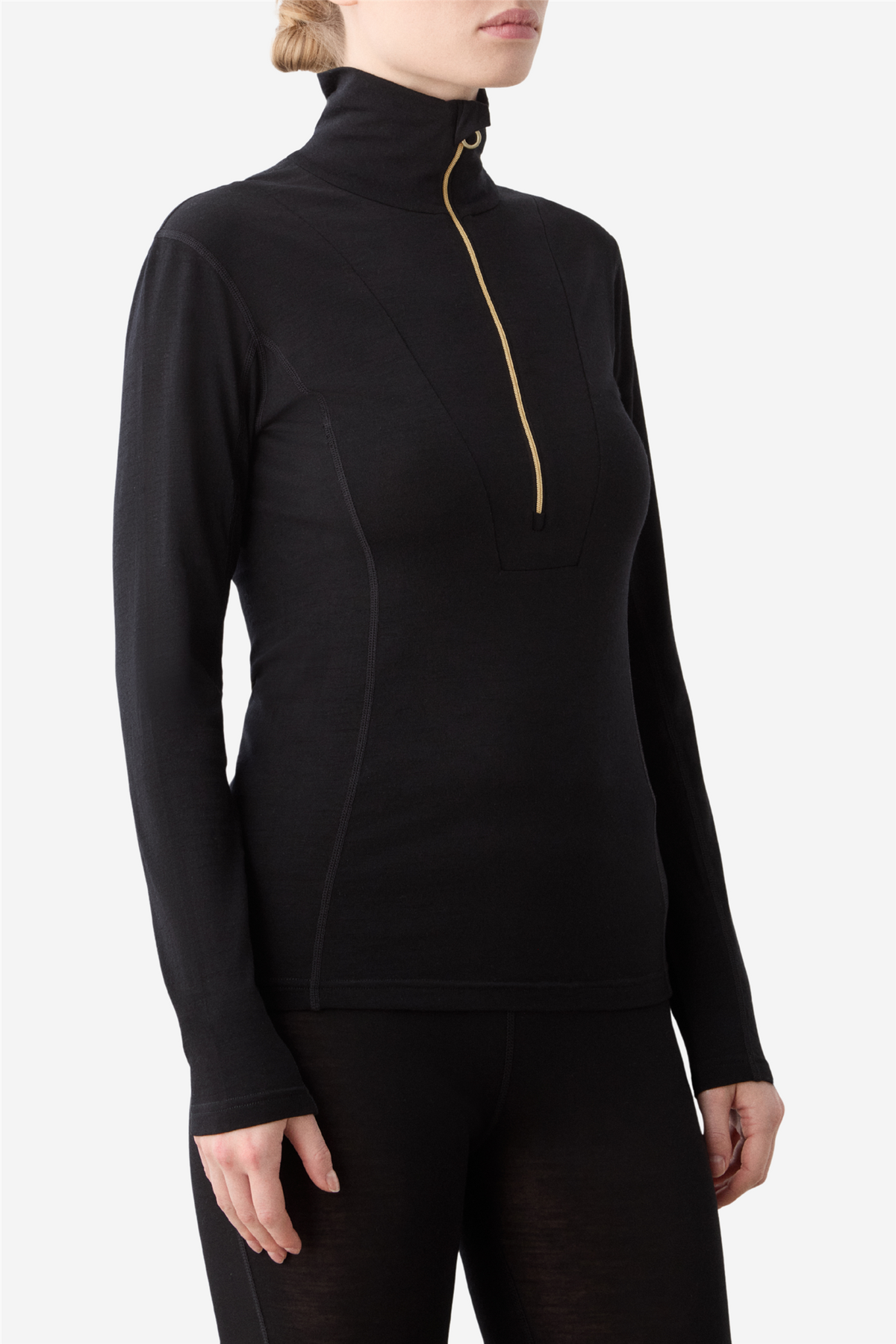 Snø ZipUp genser fra We Norwegians. Vår luksuriøse base layer i skandinavisk design er laget av vårt favorittgarn fra Südwolle – superfine merinoull (17,5 mikron) blandet med Creora-Eco-Soft for ekstra stretch og komfort. Resultatet er et lett, pustende single jersey-stoff som føles som et ekstra hudlag.