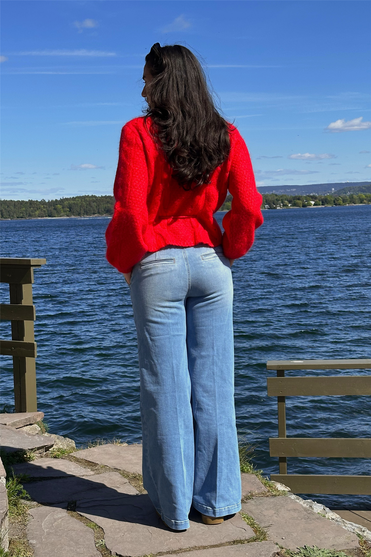 Details such as French side slit pockets, closed back pockets and front pleats give the trousers an elegant and complete look. They close with a zipper and button, and have belt loops for easy styling with a belt. Made in a soft and comfortable denim with 98% cotton and 2% elastane, you get jeans that both look good and feel great.