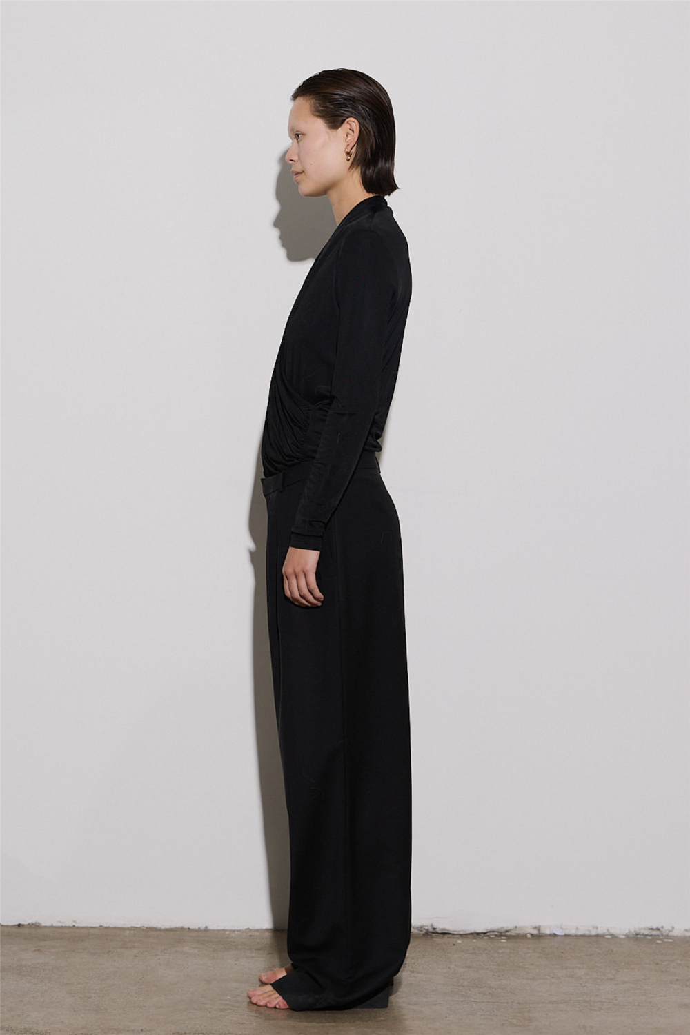 Soda Top from Envelope is a blouse inspired by their best-selling Opening Dress. Made from a sika and viscose blend that is both elegant and comfortable, the blouse features fitted, long sleeves and a draped oval opening at the front - the perfect choice for a standout look at any party this season!