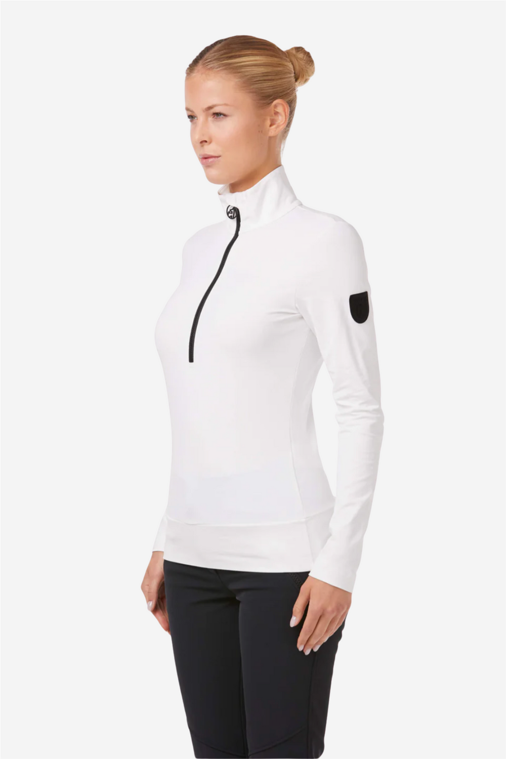 Wieka fra Toni Sailer. Et must-have under skijakken, funksjonell, elastisk og hurtigtørkende. Perfekt for både bakken og som del av et crossover-look. Toni Sailer satser på et rent og stilrent design. Under skikjøring imponerer WIEKA også med sine funksjonelle egenskaper som gir en førsteklasses brukeropplevelse. First Layer-en er utstyrt med en ny glidelås og et fløyelspyntet geitelogo-patch.