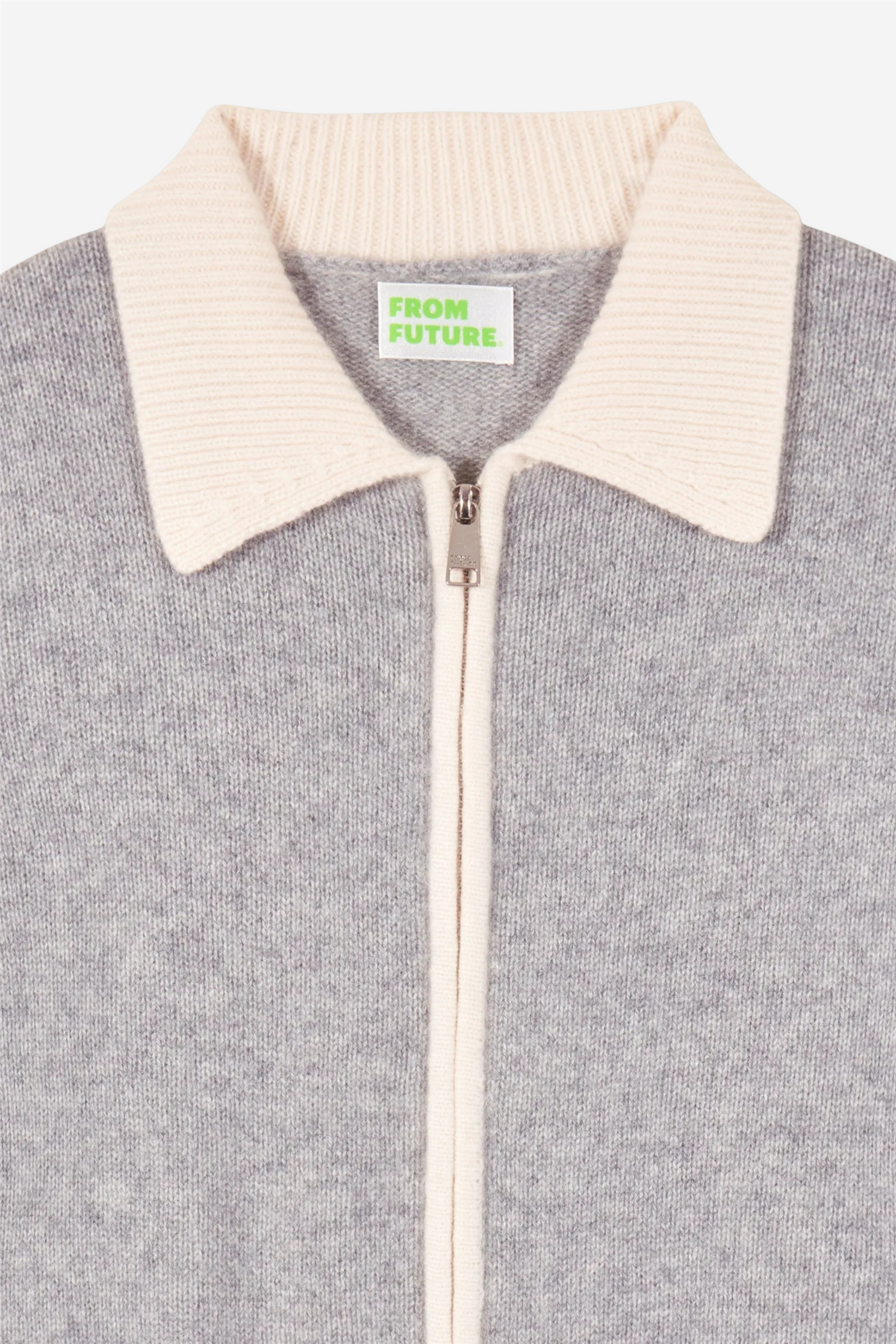 Contrast Rib Cardigan fra From Future i 100 % GCS®-sertifisert kasjmir, designet for å skille seg ut. Den korte fasongen kombineres med sofistikerte kontrastkanter langs skjortekraven, glidelåslukkingen og mansjettene, som gir et moderne og grafisk uttrykk. Perfekt til både dressbukser og jeans - et statement-plagg som løfter enhver look med minimal innsats.