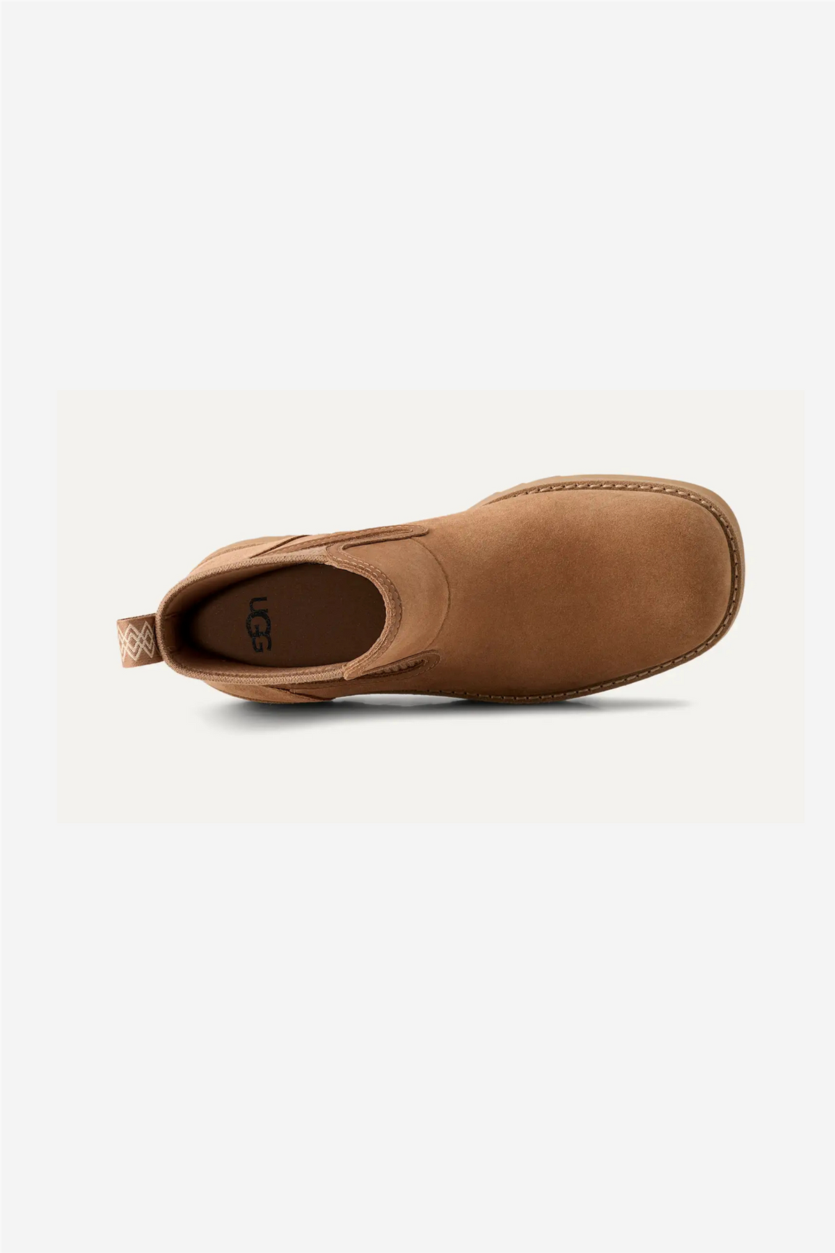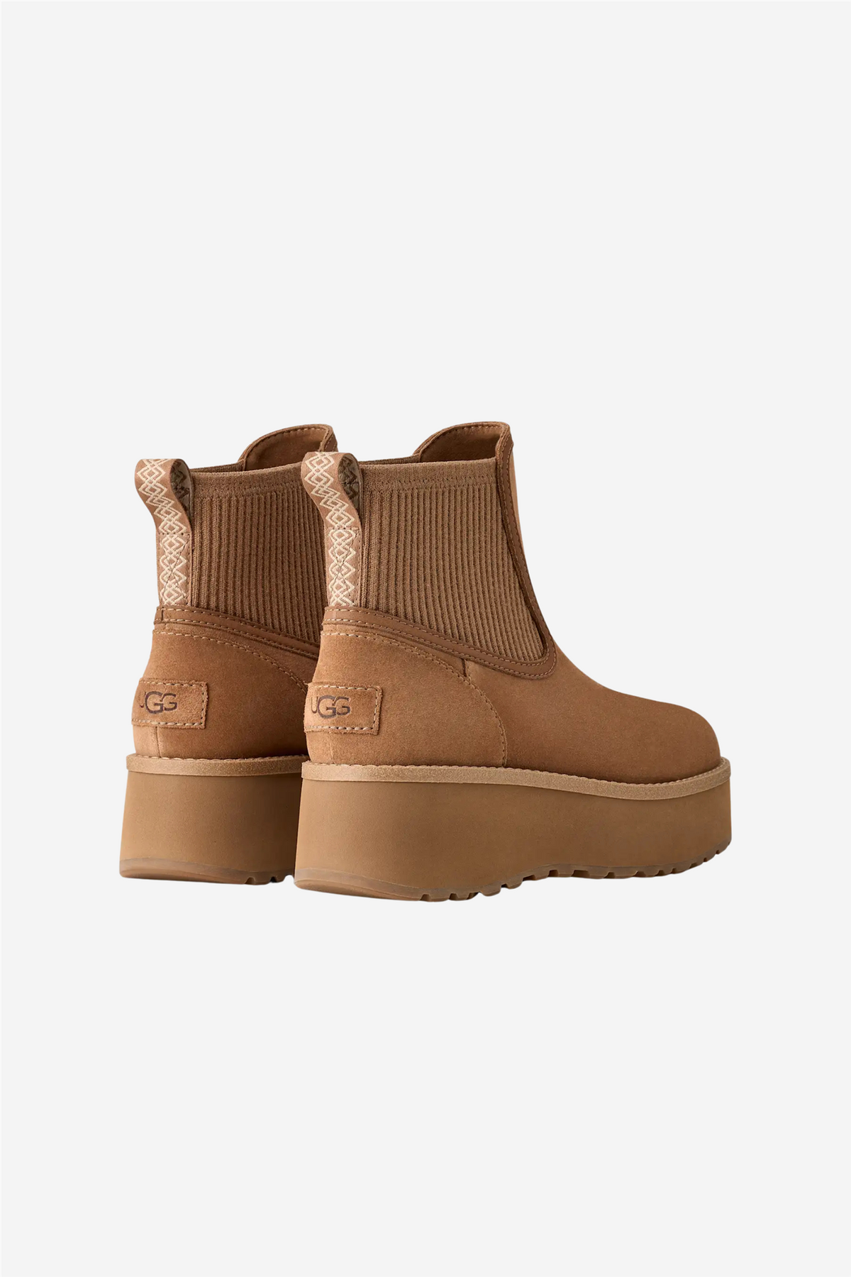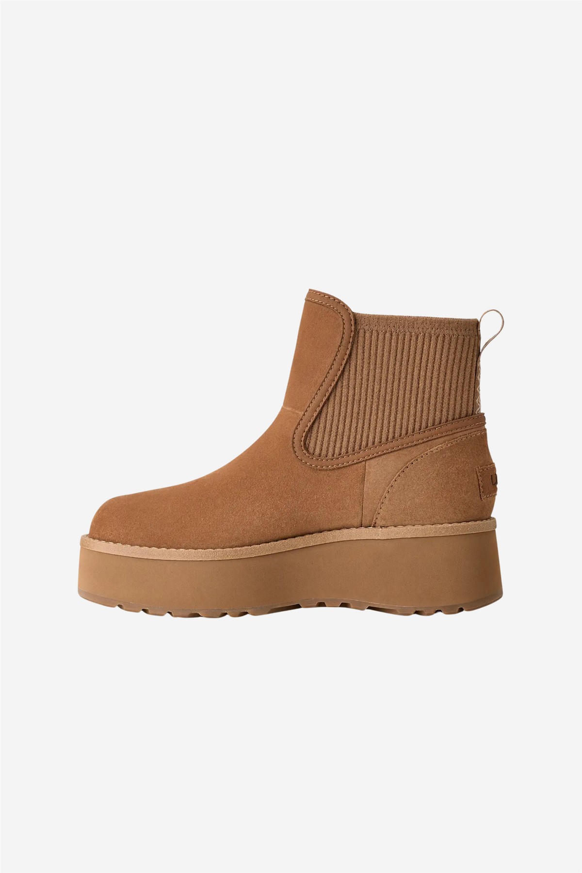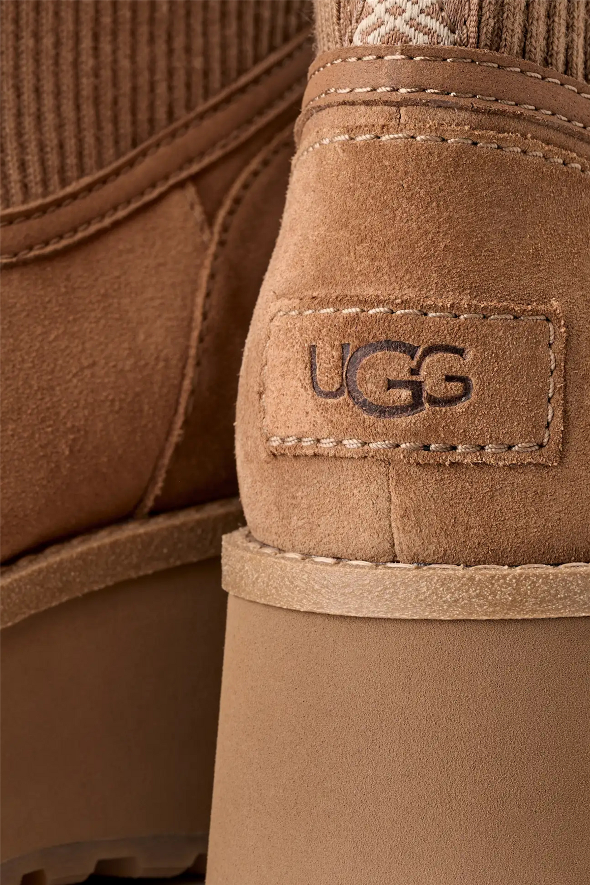 Cityfunc Chelsea fra UGG. Klassisk Chelsea-stil møter UGG’s uovertrufne komfort. Allsidig, enkel å bruke og full av personlighet, denne pull-on-støvelen har en dristig 3,8 cm plattform som både løfter høyden og humøret ditt. Støvelen er laget i vannavvisende semsket skinn og har et ribbestrikket skaft for en varm og teksturert finish. Med en spenstig mellomsåle i sukkerrør-EVA og lett yttersåle i gummi, kan du kjenne ~func~ uansett hvor dagen tar deg.