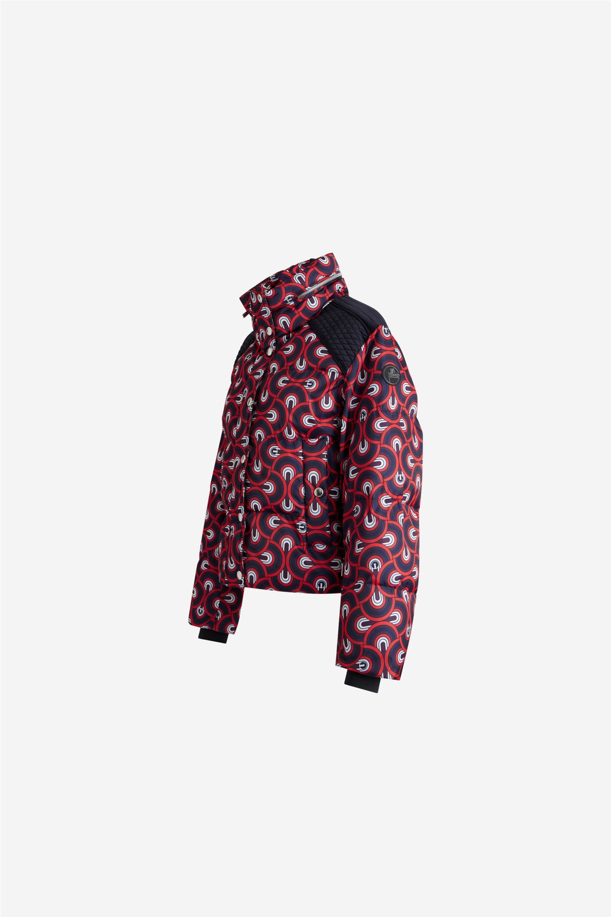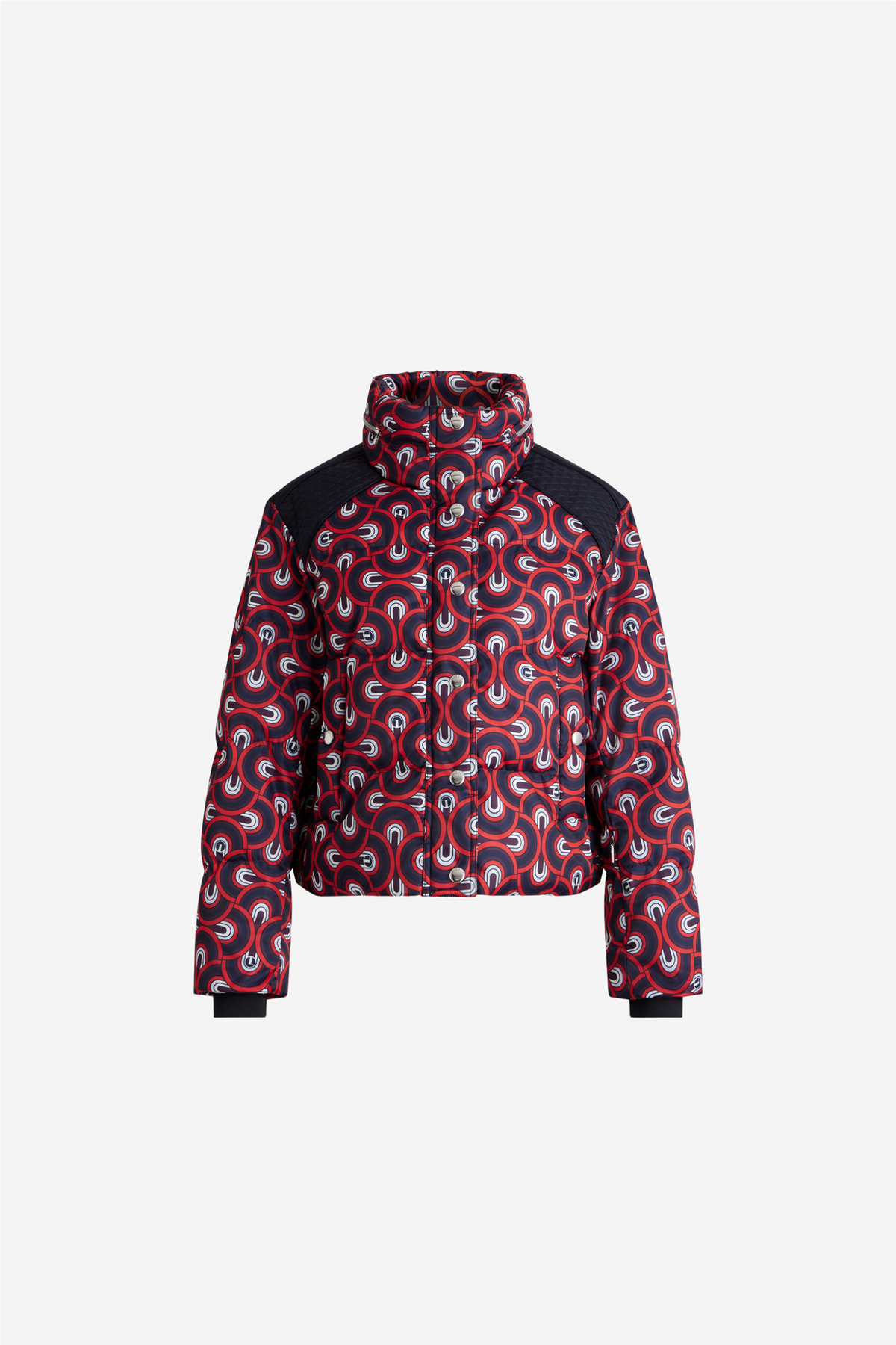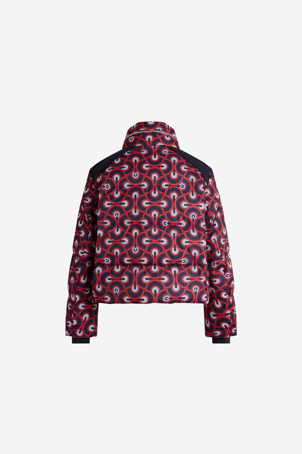 Tatum Pilule Acajou skijakke fra Fusalp. Tatum Pilule-dunjakken kombinerer letthet og varme med sitt originale trykk og diamant‑smock‑quilting på skuldrene. Designet for hybridbruk – fra bakkene til byen – kombinerer den vannavvisende sateng mikrotwill med en høyytelses FUSALP-membran. Syntetisk dun gir optimal varme for kalde dager, mens hetten som er integrert i kragen og mansjettene sikrer både komfort og praktisk bruk. En dunjakke som elegant kombinerer stil og funksjonalitet.
