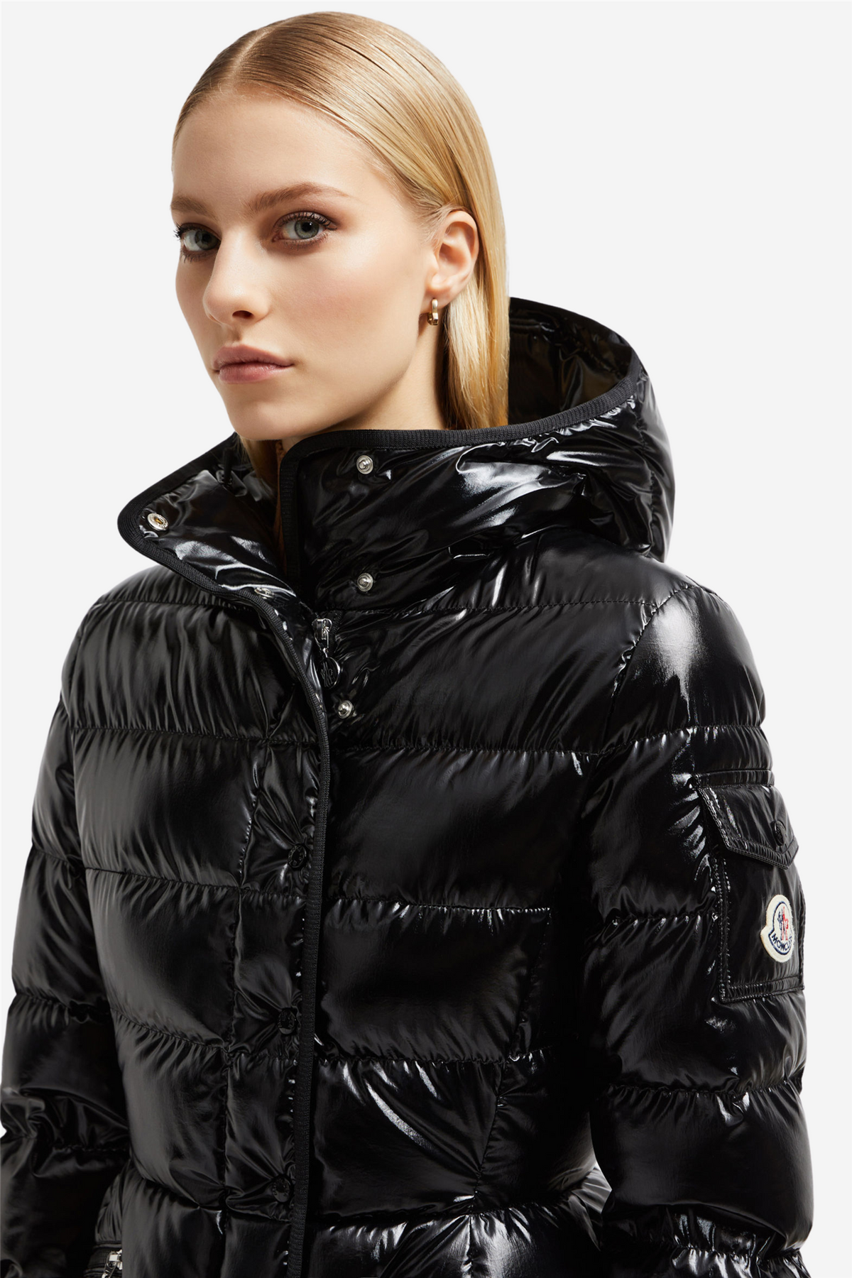 Barante Jacket from Moncler is a feminine and functional down jacket inspired by the 70s. The Barante jacket is made of nylon with a glossy finish, and the jacket's feminine aesthetic is highlighted by a narrowed waist that creates an A-line silhouette. An adjustable hood, two side pockets and emblematic logo add the finishing touch.