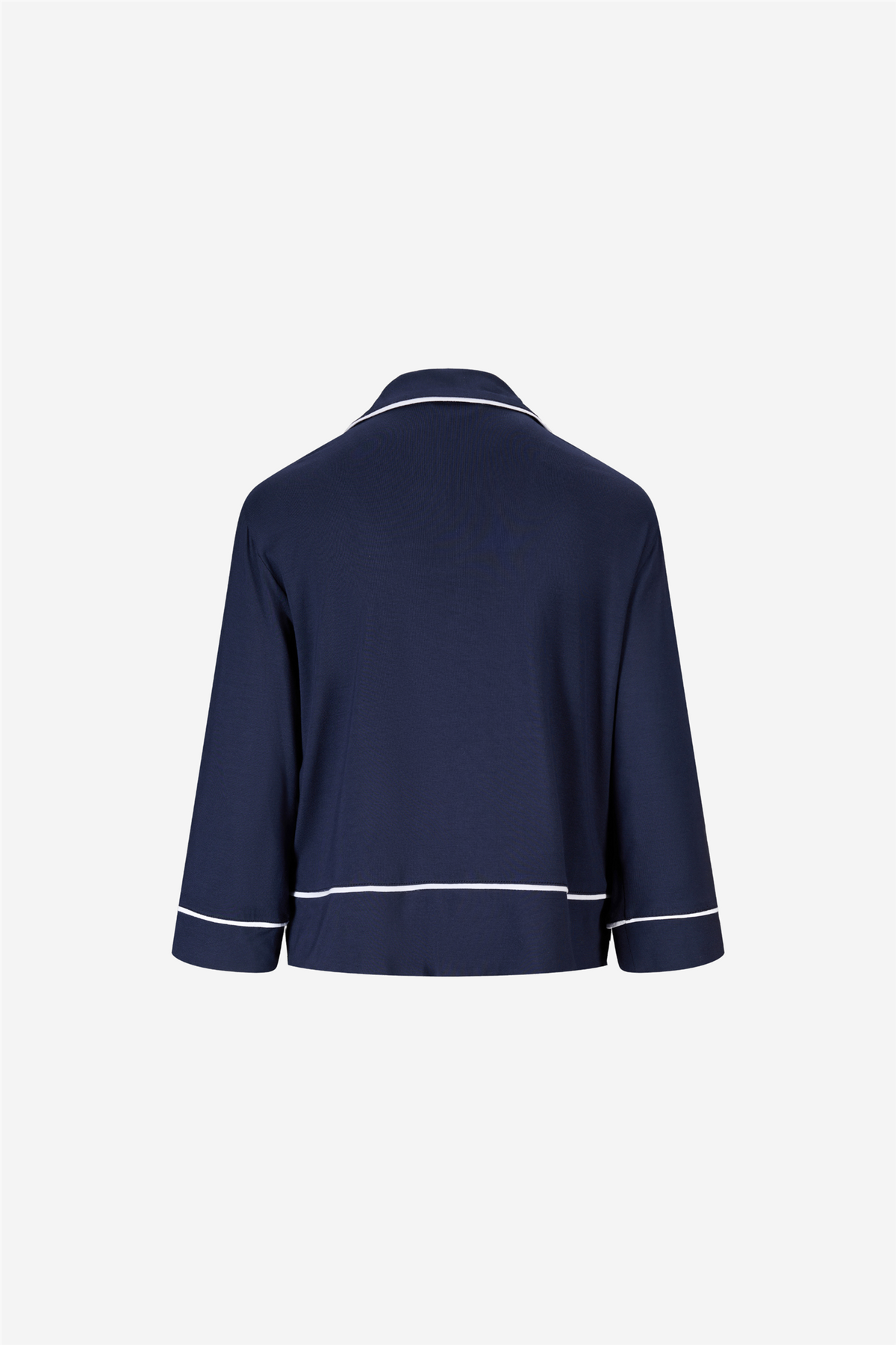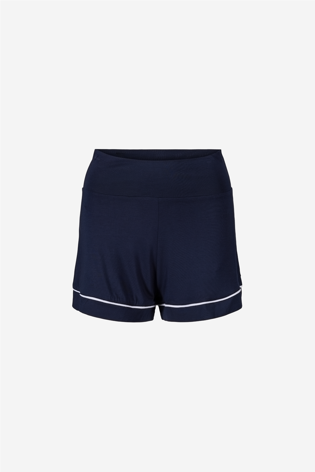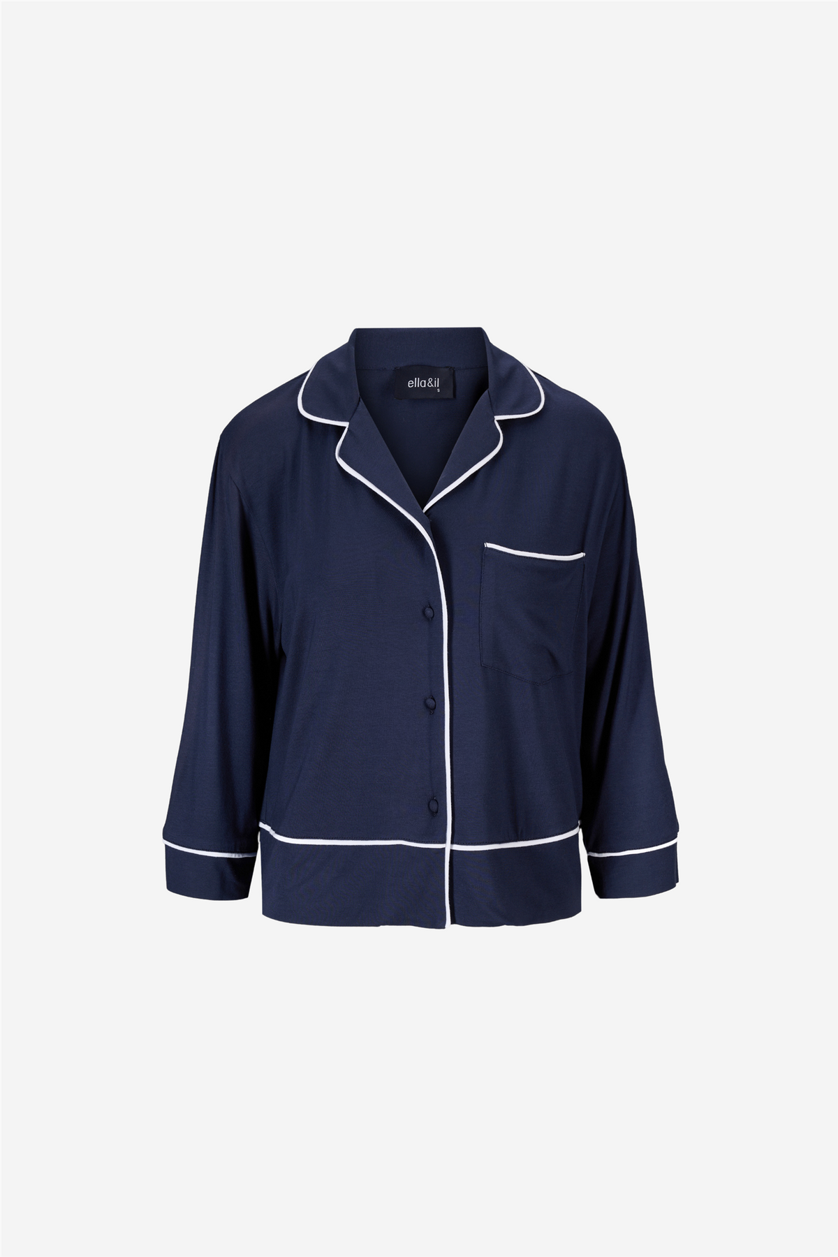 Serena Pajamas from Ella&il combines timeless style with ultimate comfort, made from a super soft modal blend with elegant stripes. The shorts have a high, comfortable waist and white contrast ribbons at the hem for a refined touch. The pajama shirt is designed with a round collar, buttons covered in the same fabric, and a high hem and cuffs, all detailed with contrast ribbons. Perfect for relaxing in style or to elevate your sleepwear collection.