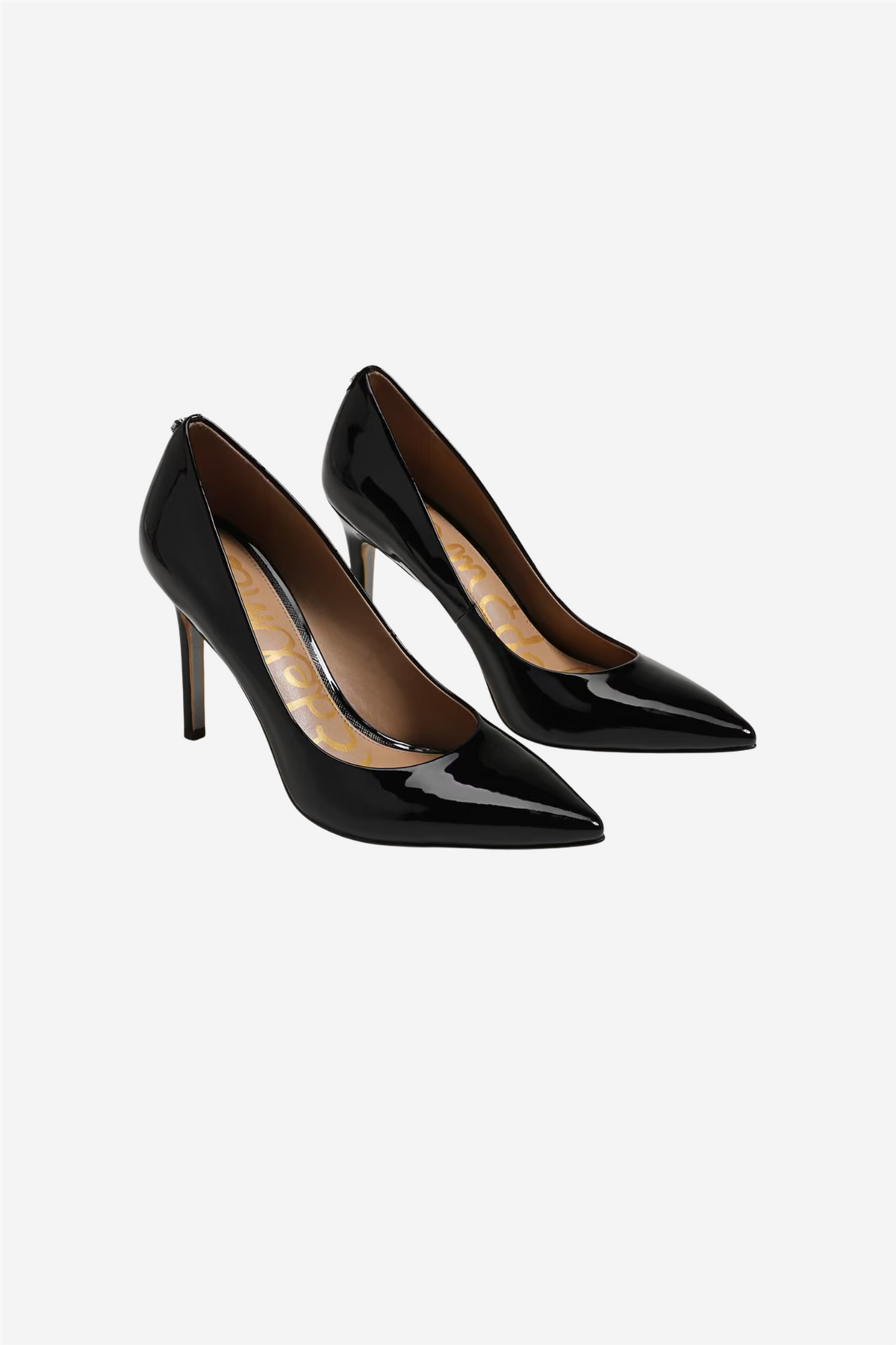 Hazel Pointed Toe Pump fra Sam Edelman er en tidløs og feminin pumps i blankt sort patentlær. Med spiss tå og elegant silhuett gir den et klassisk uttrykk som passer like godt til festkjolen som til dressbukser på jobb. En allsidig favoritt som løfter ethvert antrekk med en sofistikert glans.