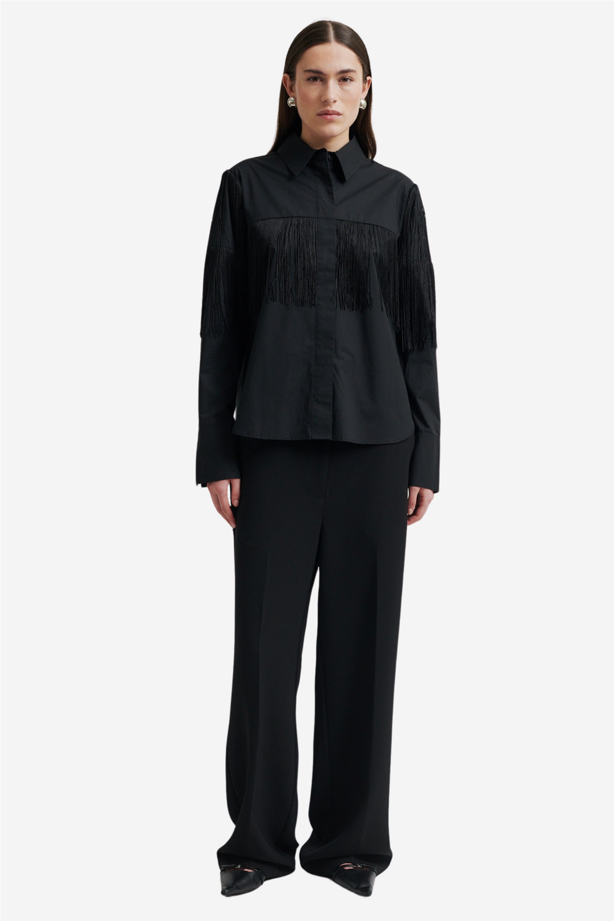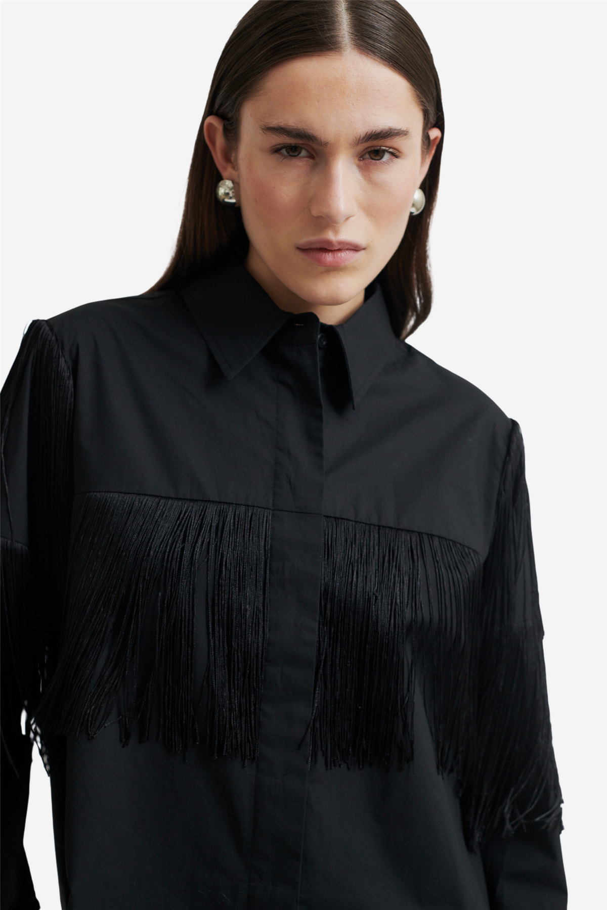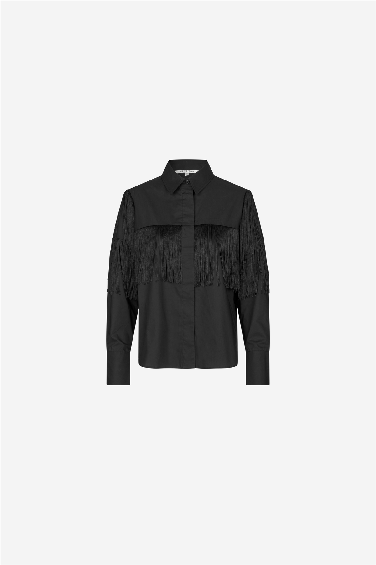 Frinchie Shirt from Second Female is a shirt with long fringe details made from soft and smooth organic cotton. The shirt has a classic collar and button closure with visible top button. Long sleeves with buttoned cuffs. Regular fit.