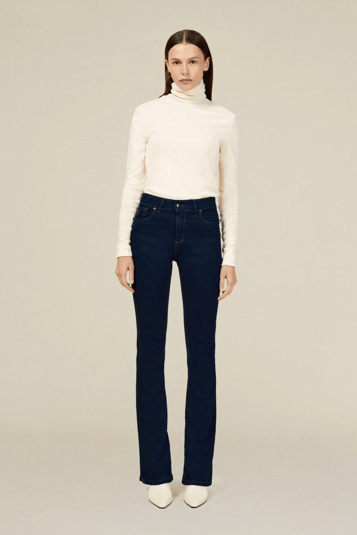 Raval 16 Night Blue Rinse fra Lois Jeans er en klassisk slengbukse-modell som er figurnær fra toppen etterfulgt av Lois sin signatursleng fra kneet og ned. Denne kommer i mørkeblå denim med stretch.