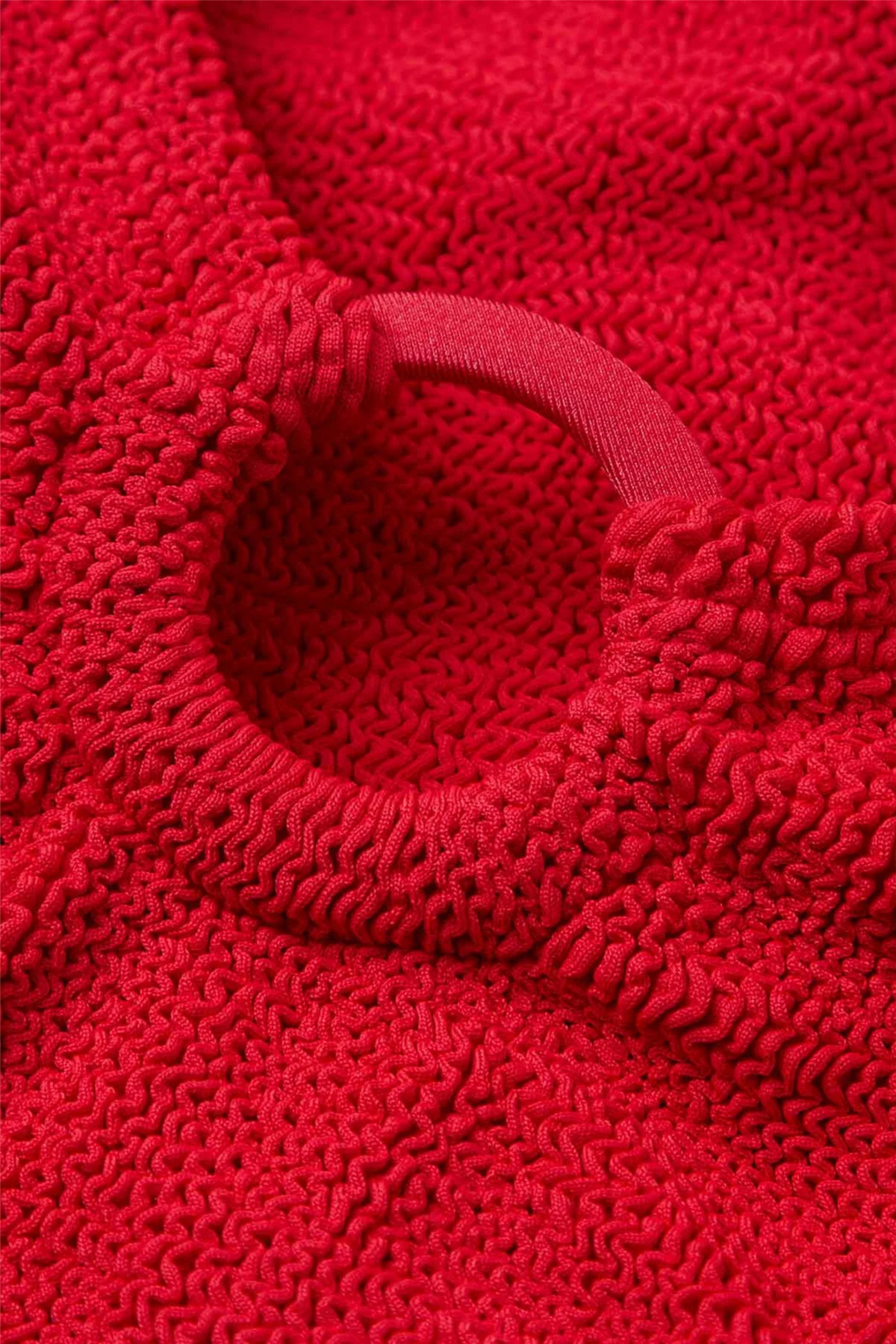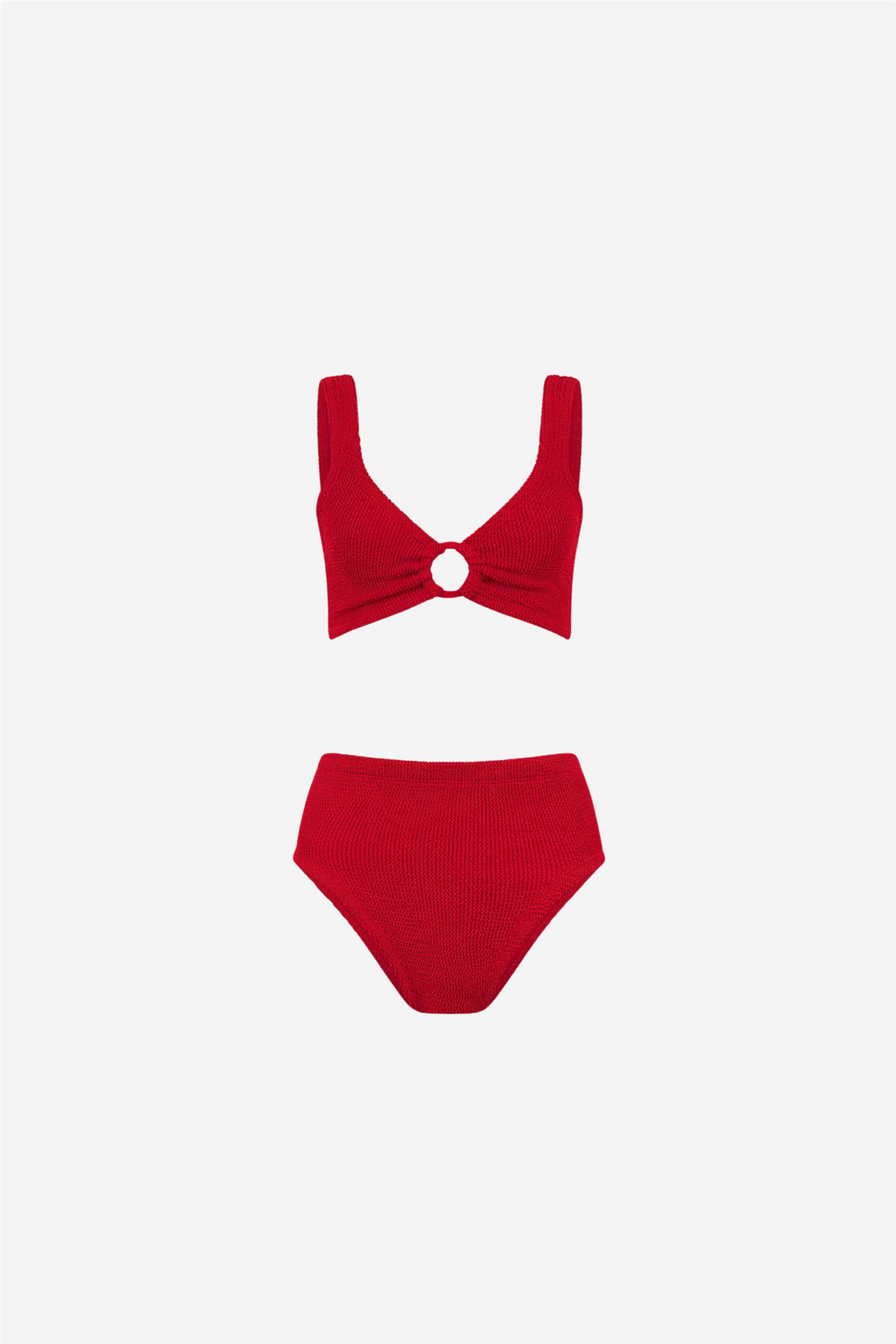 Nadine Bikini fra Hunza G har en flatterende passform og stilrene ringdetaljer, og kombinerer en tidløs silhuett med et hint av diskret luksus. Et design som passer like godt til en avslappende dag på stranden som ved bassengkanten.