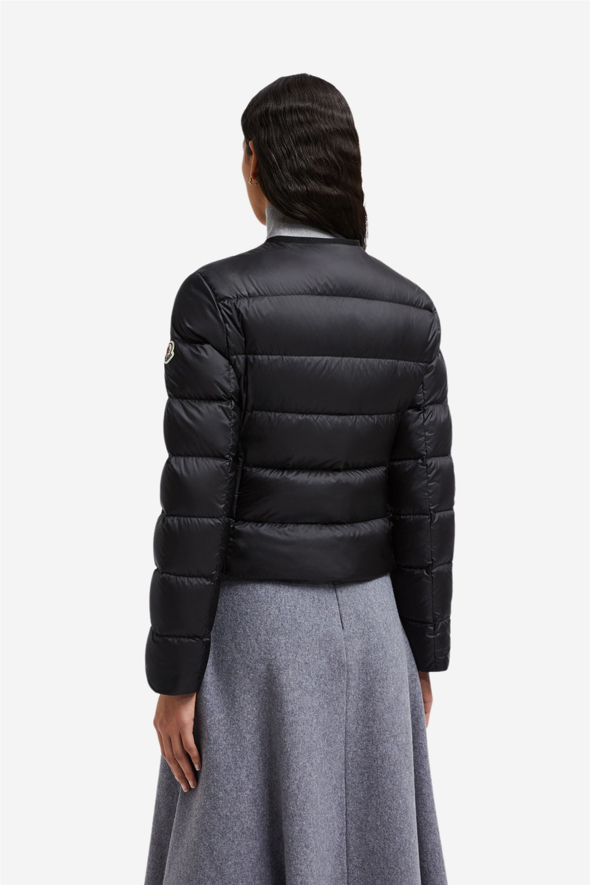 Laurine Short Down Jacket fra Moncler er en klassisk silhuett som friskes opp med en satenfinish. Denne korte dunjakken er moderne og elegant med en slank passform. Glidelåslukking og lommer i front med knappelukking. Moncler-logo på ermet.