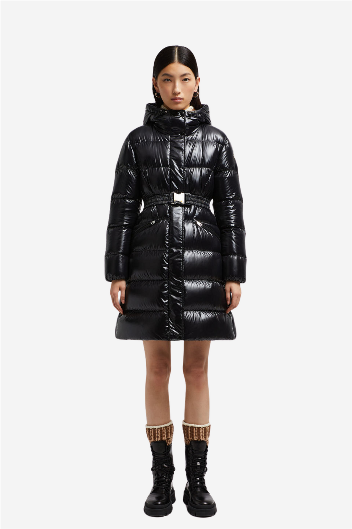 Bellevue Long Down Jacket fra Moncler er designet for å være tidløs og beskytter mot elementene uten å gå på bekostning av femininitet. Bellevue-dunjakken er klassisk Moncler, laget av deres ikoniske nylon laqué-materiale. Dette luksuriøse stoffet gir jakken en vannavvisende og glansfull finish som forsterker det lange designet. Den feminine silhuetten fremheves av et elastisk belte i midjen, og jakken kan enkelt brukes fra dag til kveld, enten i byen eller på fjellet.