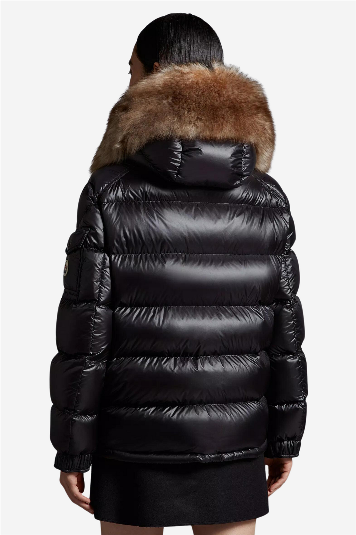 Mairefur Short Down Jacket fra Moncler. Jakken er et ikonisk og eksklusivt Moncler-plagg med tidløst design og avtagbar hette utsmykket med en langhåret shearling-kant. Jakken er laget i Moncler sin velkjente lakkerte nylon. Jakken har avtakbar og justerbar hette, krage med avtagbar shearling og påsydd lomme på venstre erm med logo.