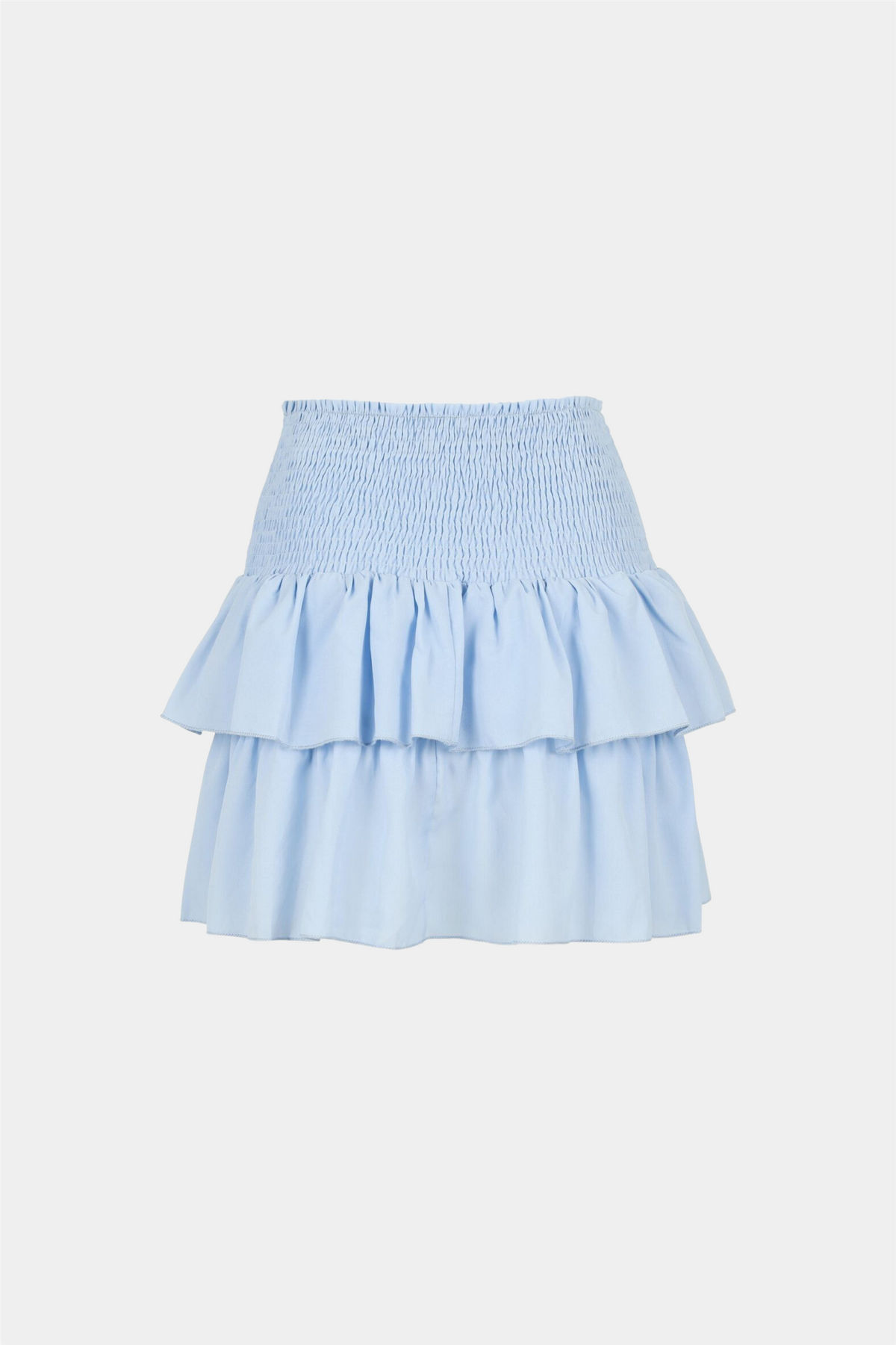 Carin Skirt fra Neo Noir er et søtt, kort skjørt med to lag volanger og splitt foran. Midjen er i smock med strikk som gjør det komfortabelt å ha på seg!
