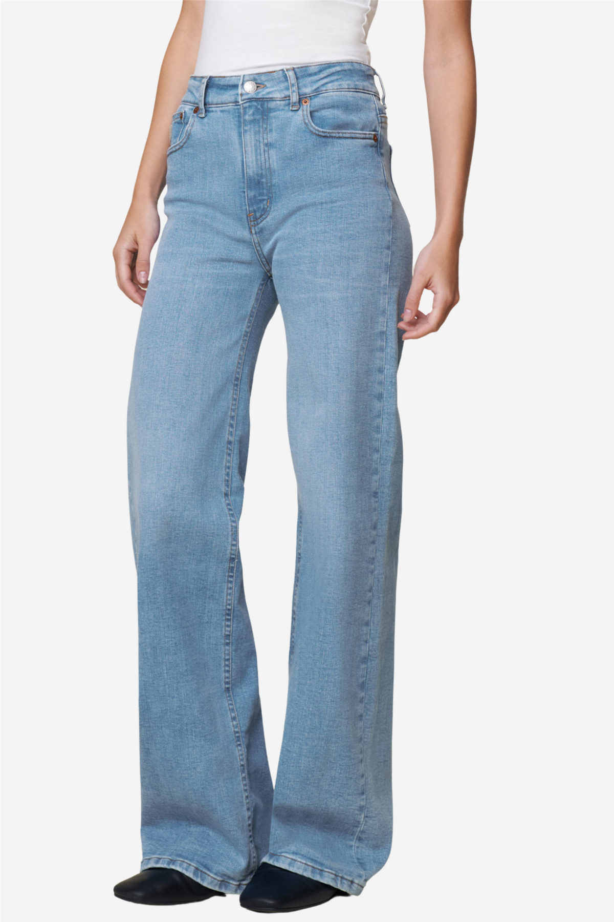 Palazzo Angel Cloudy er en vid jeans fra Lois. Palazzo-modellen fra Lois er en kul jeans i en komfortabel passform med høyt liv, god stretch og vide ben. Klassisk femlomme-modell med beltehemper i linningen. Jeansen sitter stramt over hoftene og setet, og er rett og vid nedover.