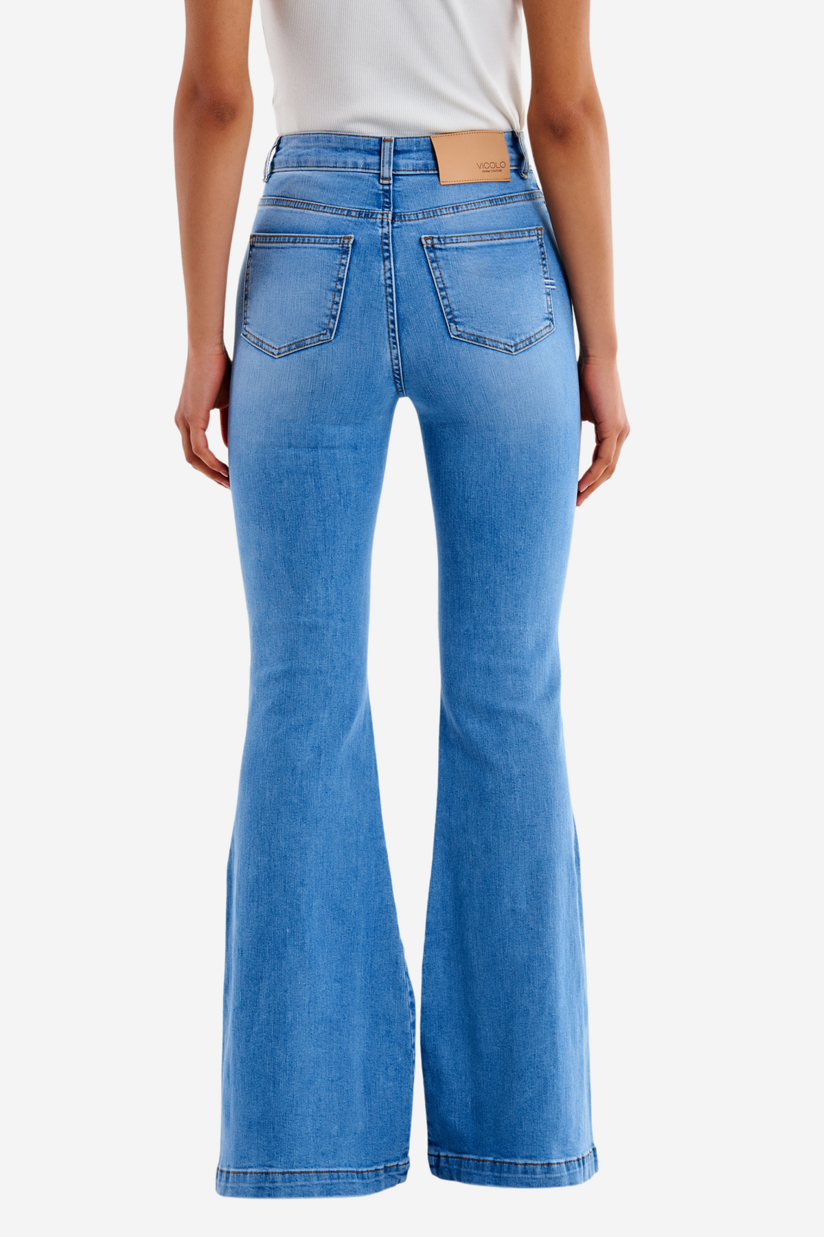 Marta Denim fra Vicolo. Elegant, fresh og skikkelig flatterende! Denne denimjeansen fra Vicolo kombinerer klassiske linjer med moderne detaljer. Den høye midjen former og fremhever, mens den vide passformen gir en sofistikert og luftig silhuett.