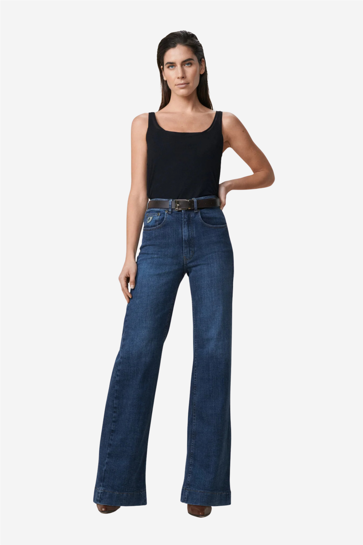 Rosa fra Lois med høyt liv og vide ben – en flatterende passform med god stretch som gir både komfort og stil. Den kommer i en elegant mørk vask og passer perfekt til både hverdags og penere anledninger. Rosa er en tidløs modell med klassisk passform som sitter flatterende og komfortabelt. Laget i et mykt stretchstoff som gir god bevegelighet, samtidig som den holder fasongen.