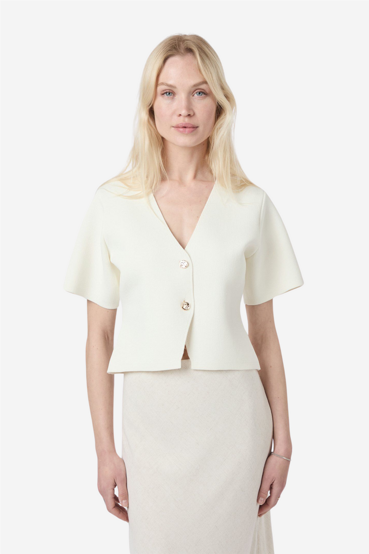 Setta Knit Blouse fra Neo Noir er en elegant, kulstrikket bluse med korte ermer og dekorative gullknapper i front. Det innsvingte snittet i midjen skaper en feminin og flatterende silhuett – perfekt til både hverdag og finere anledninger. En tidløs garderobefavoritt som enkelt kan styles opp eller ned.