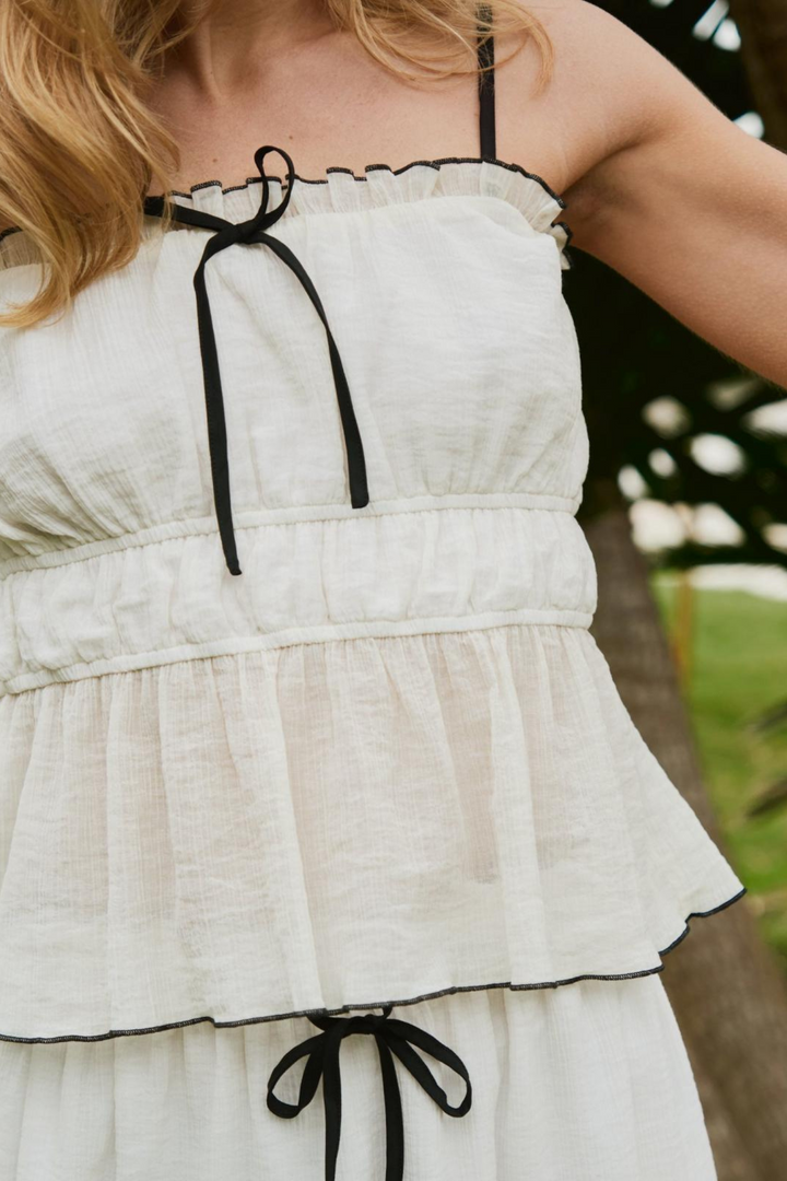 Emberly Crepe Top fra Neo Noir er en feminin topp i crepe-kvalitet, med justerbare stropper for optimal passform. Kontrastsløyfen foran gir en elegant touch – perfekt til både jeans, skjørt eller dressbukse.