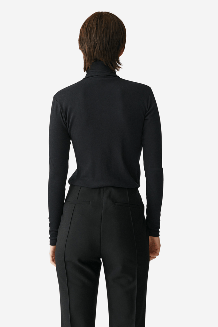 Julie Josephine Rib Cotton Jersey Polo er laget av en ultramyk bomull fra Italia. Den er kuttet for en tett, kroppsnær passform og har en litt forlenget kant som treffer like ved hoftene.
