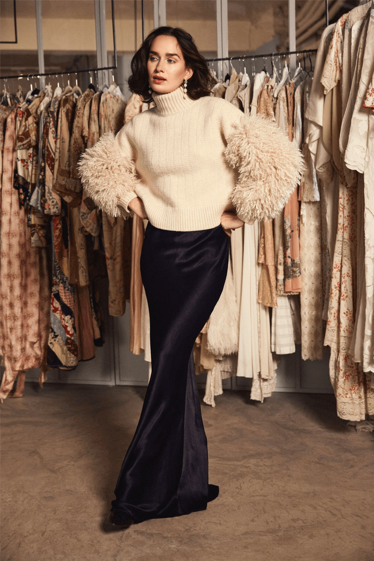 Crépe Satin Maxi Skirt fra by TiMo. Skjørtet har en maxilengde med en feminin havfrueinspirert siluett. Style det med en deilig ullgenser for en hverdagslig look eller med dine favorittheler til sesongens festligheter.