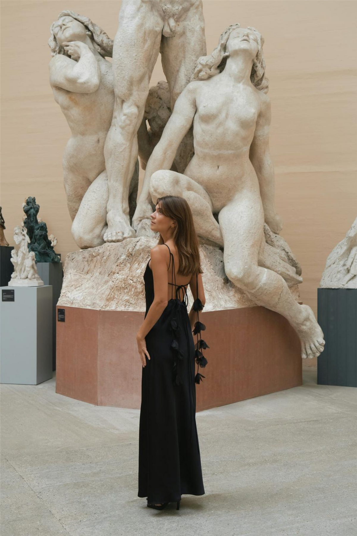 Colly Heavy Sateen Dress fra Neo Noir er en elegant stroppekjole laget i tung, glansfull crepe satin som gir et eksklusivt uttrykk. Kjolen har delikate blomsterdetaljer på stroppene og justerbare knytebånd i ryggen for en feminin og flatterende silhuett. Den kroppsnære passformen fremhever figuren på en elegant måte - perfekt til alt fra sommerfester til kveldsarrangementer.