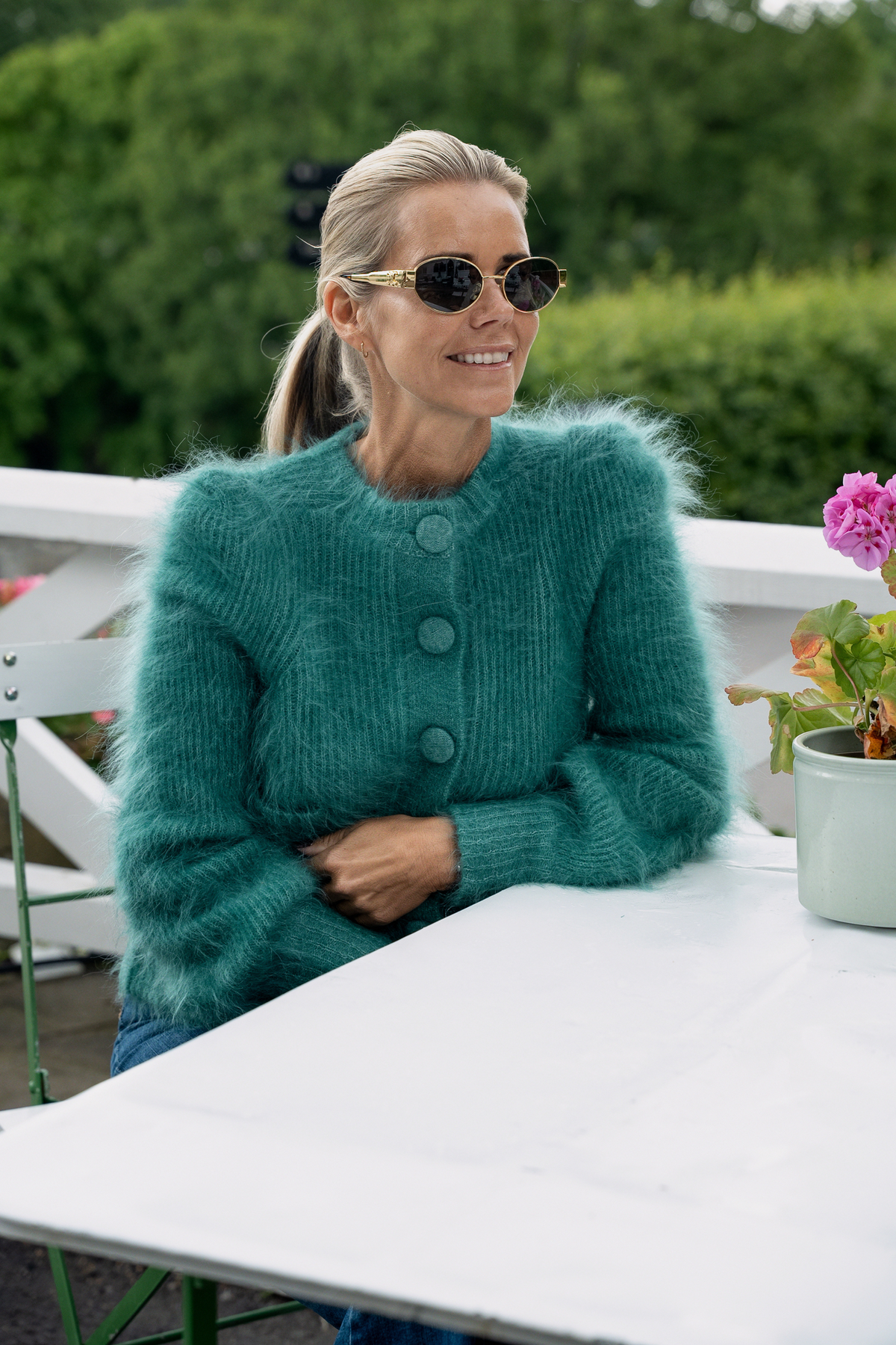 En eksklusiv cardigan designet i samarbeid med ella & il – inspirert av Marias egne favoritter og skapt med omtanke. Strikket i en luksuriøs mohairblanding, med chunky struktur og feminine puffermer som gir det lille ekstra. Laget for å vare – og for å styles sesong etter sesong. Dette er en cardigan du drar over skuldrene en kjølig sommerkveld, styler med jeans til hverdags eller over en kjole når kvelden nærmer seg.