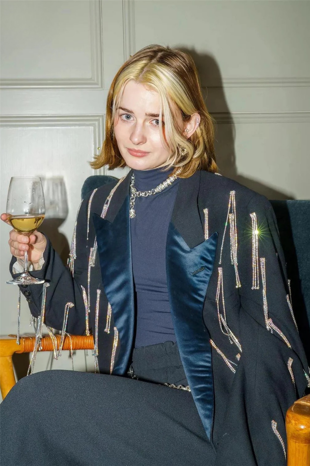 Materiale: Sølvbelagt messing, glasskrystaller, fjærring i sølvbelagt kobber
