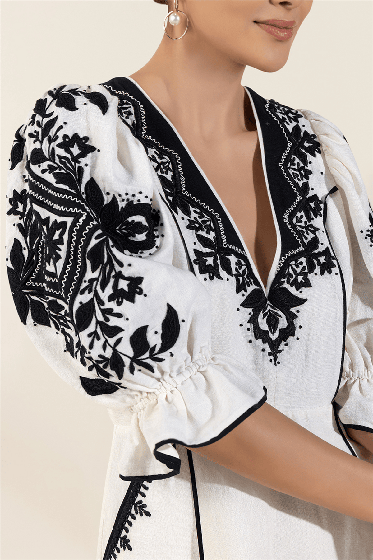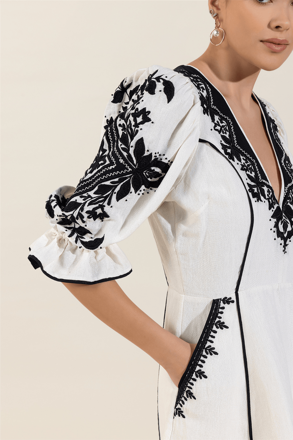 Scarlett Poppies Baroqueen Dress er en fantastisk minikjole i lin med vakre broderier, detaljer og søte puffermer. Lommer i sidene.