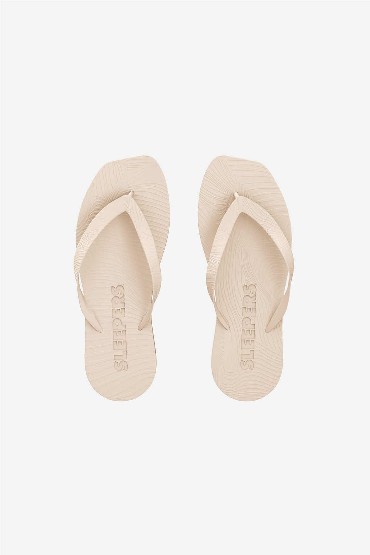 Sandalene High Platform fra Sleepers er en signatur med den karakteristiske firkantede formen. Denne flip floppen skiller seg fra den klassiske runden formen og gir et skarpere utseende. High Platform kommer i tillegg med en høy plattformsåle og kilehæl.